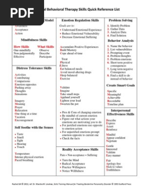 DBT Cheat Sheet Dialectical behavior therapy Coping skills Mental