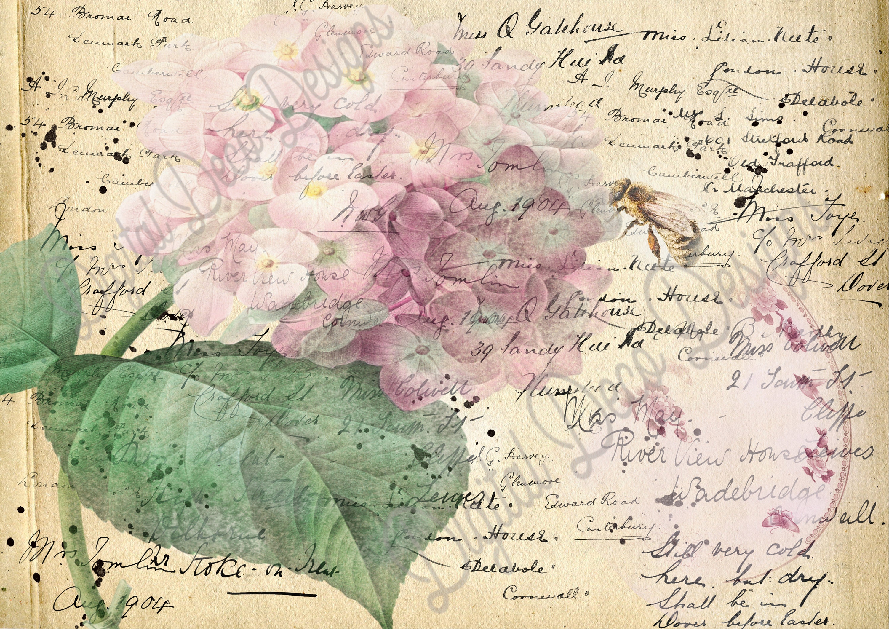 Digital Printable Decoupage Paper Instant Download Bee A Hydrangea A4