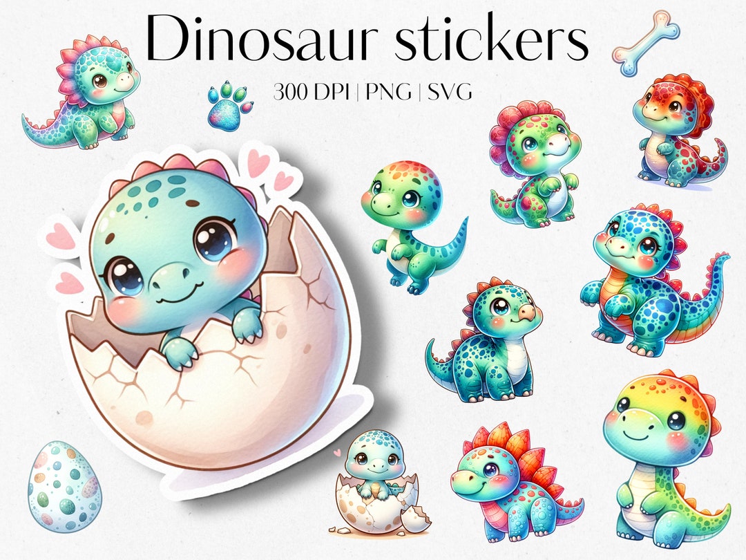 Dinosaur Stickers Printable Sticker Pack Graphic by ksenia shuneiko