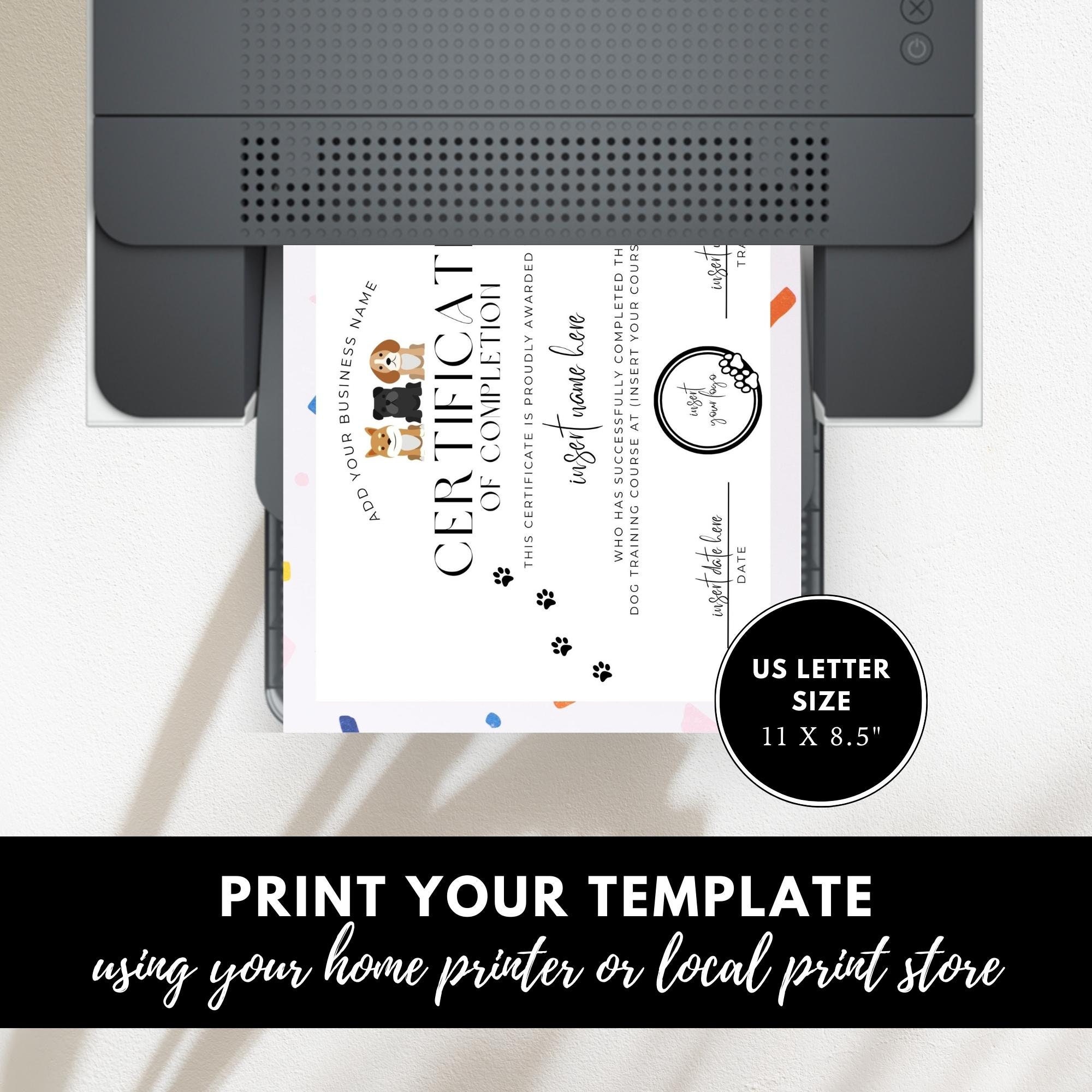 Printable Dog Training Certificate Template INSTANT DOWNLOAD Course
