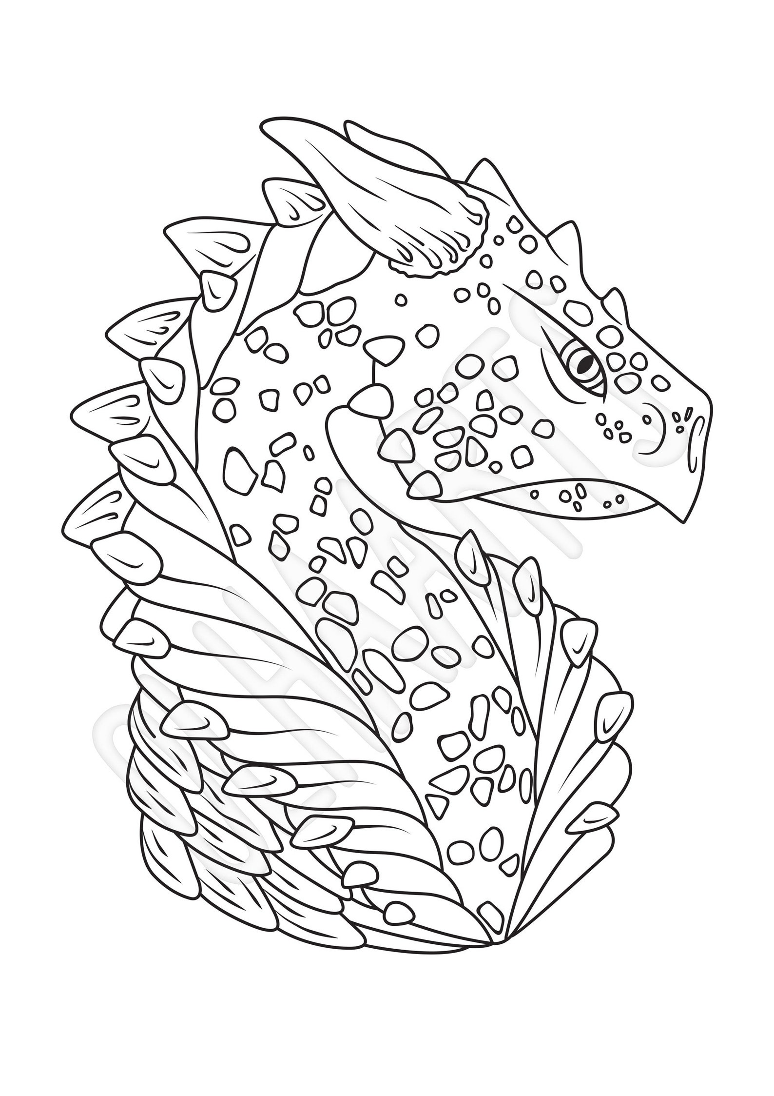 Dragon Head Printable Coloring Page for Kids and Adults Digital