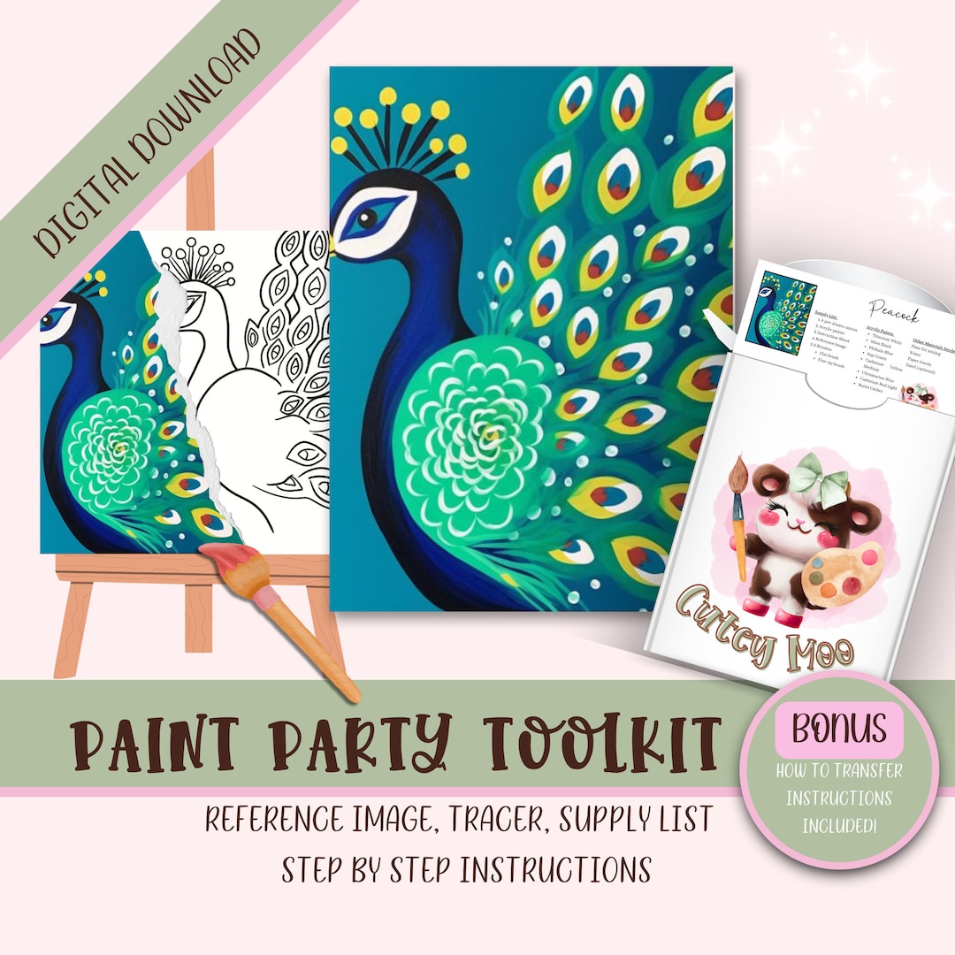 DiyPaint Party Printable Images Kit Sip and Paint Predrawn Png