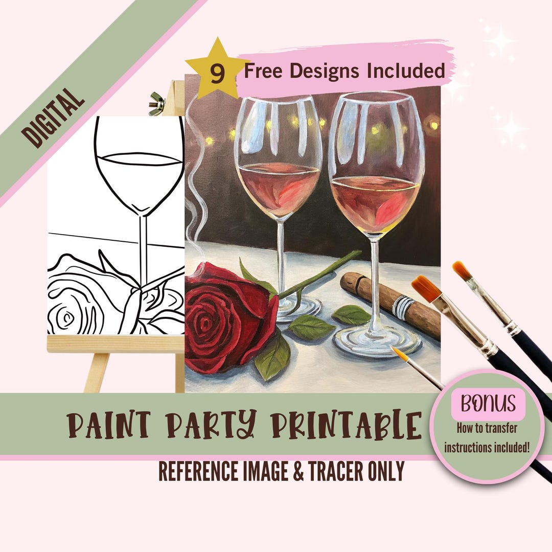 Sip and Paint Date Night Printable Predrawn Paint on Canvas