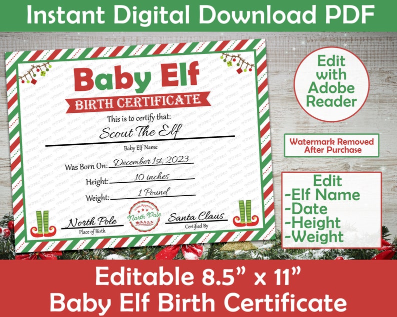 Editable Christmas Baby Elf Birth Certificate Printable Editable