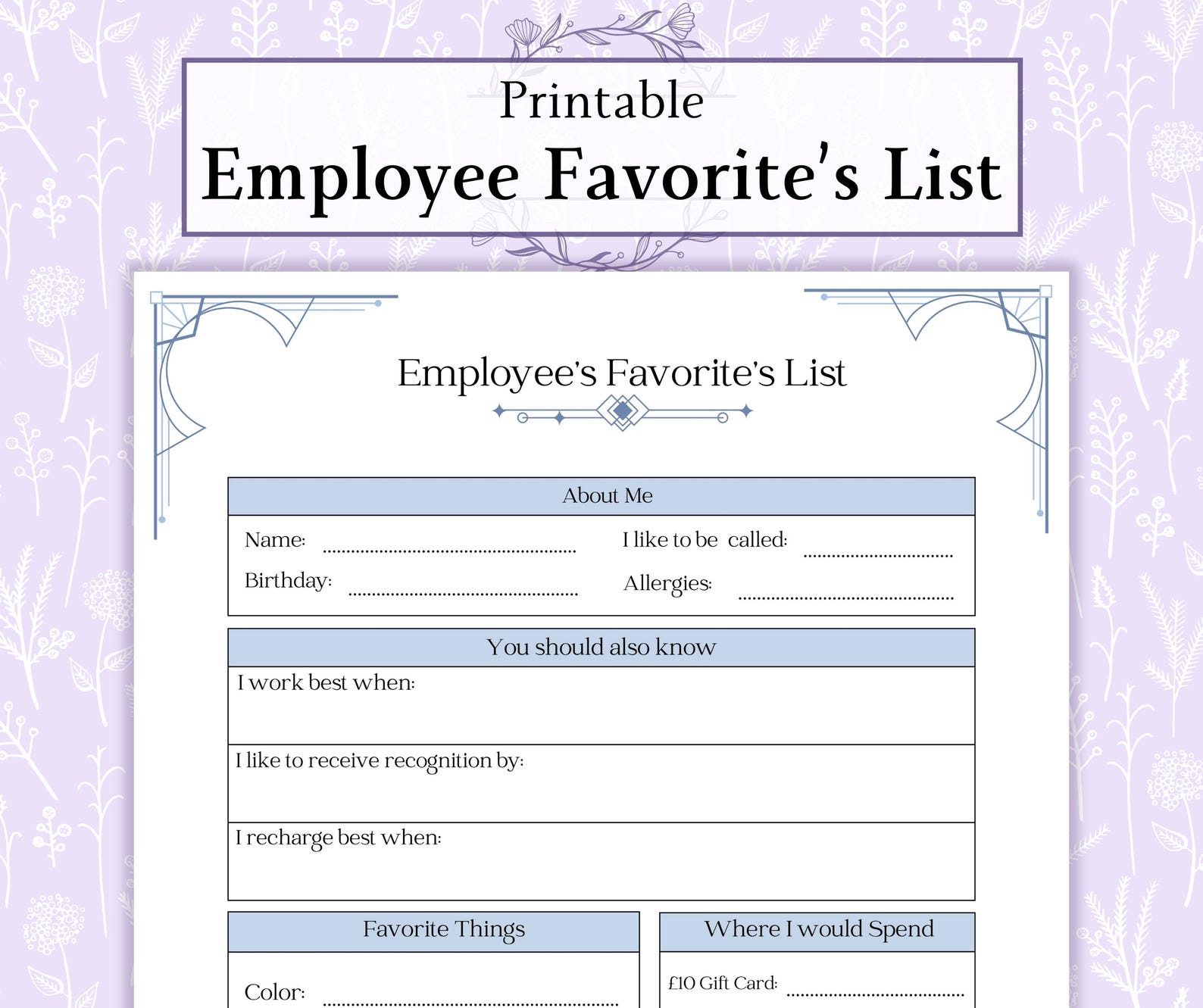 Here are some of the images for Printable Employee Favorite Things List that we found in our website database.