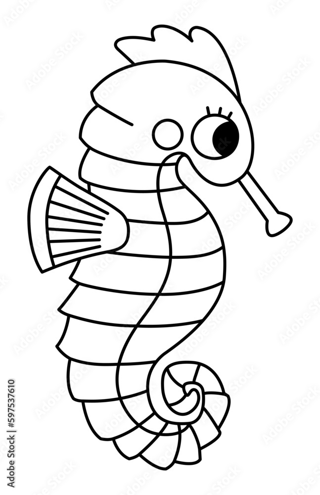 Vector Black and White Starfish Icon Under the Sea Line Illustration