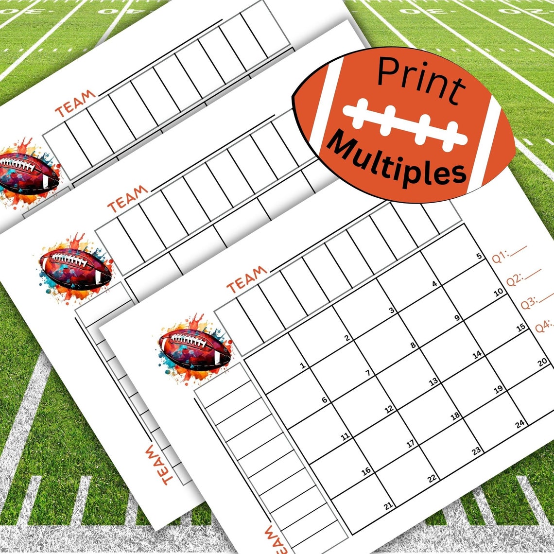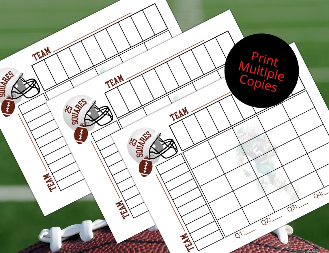 25 football Squares Game Printable 5×5 football Squares (Instant Download)