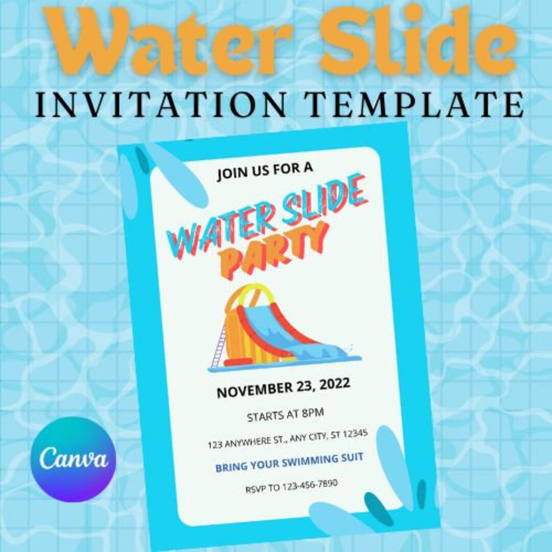 Water Slide Party Invitation Template Etsy