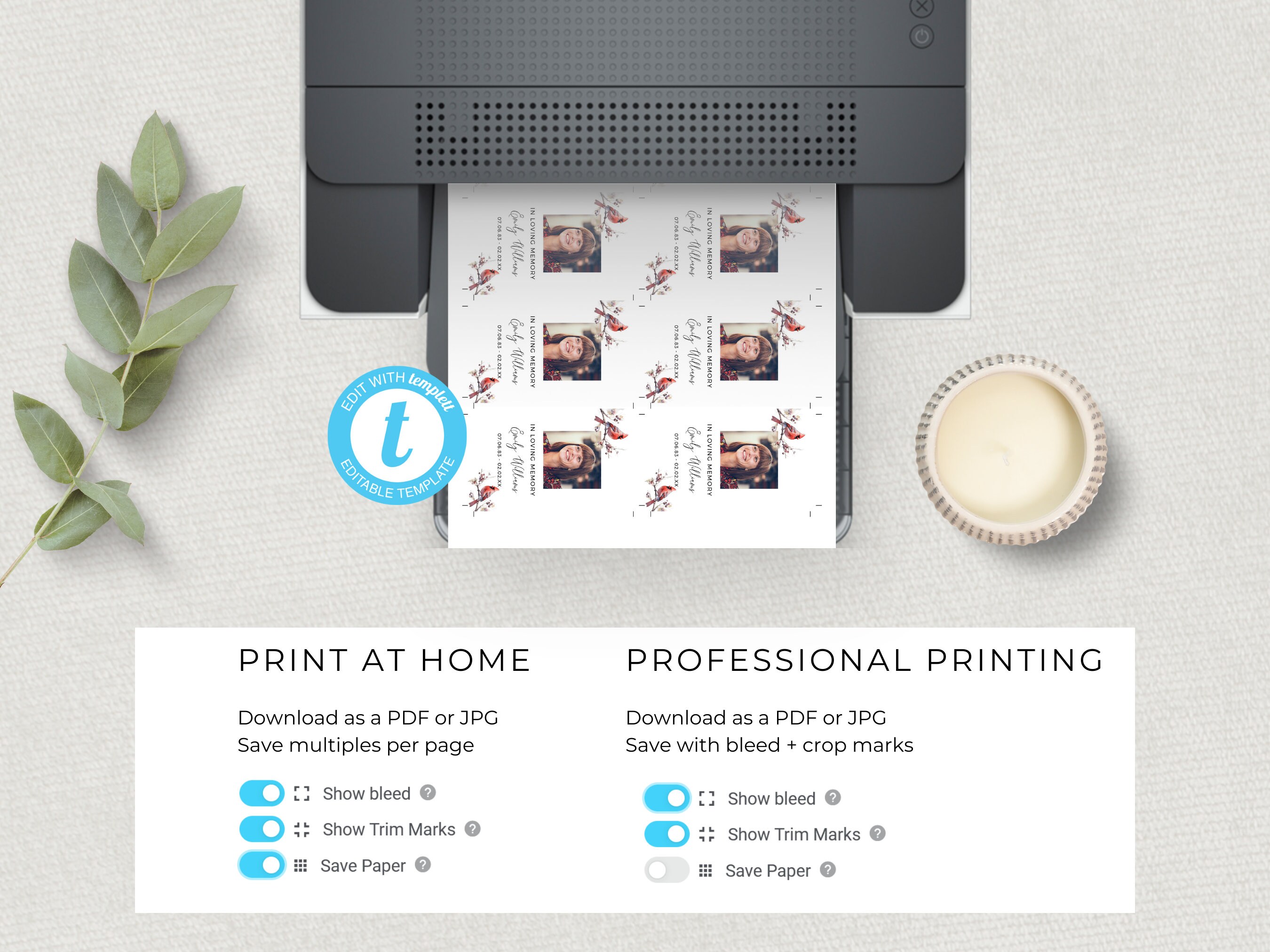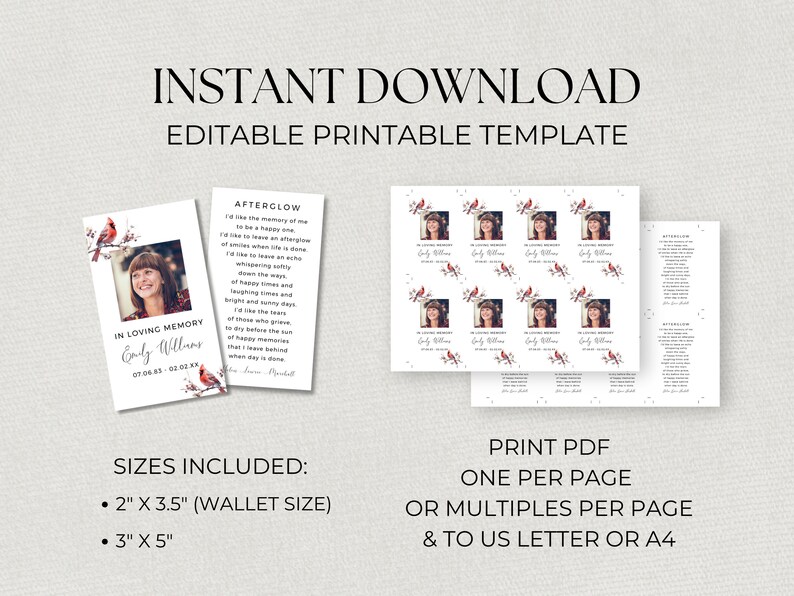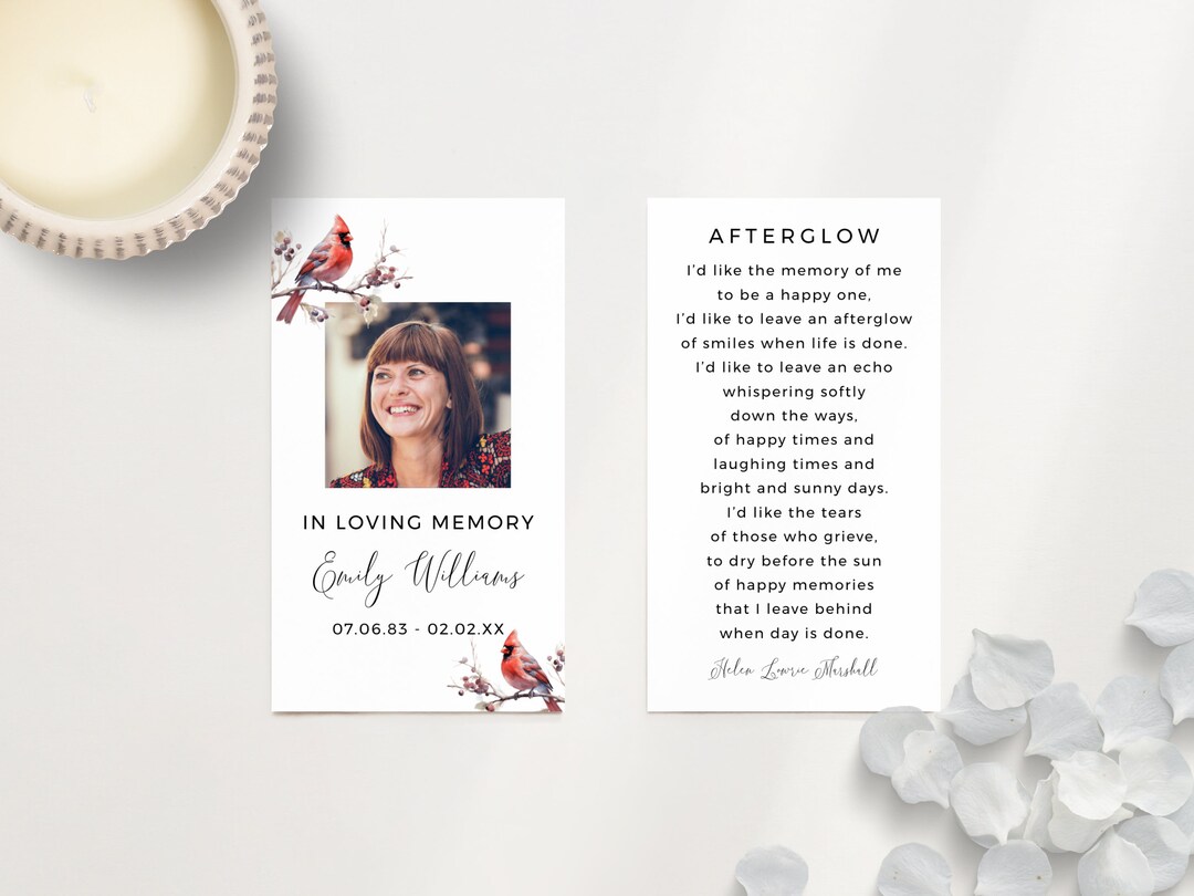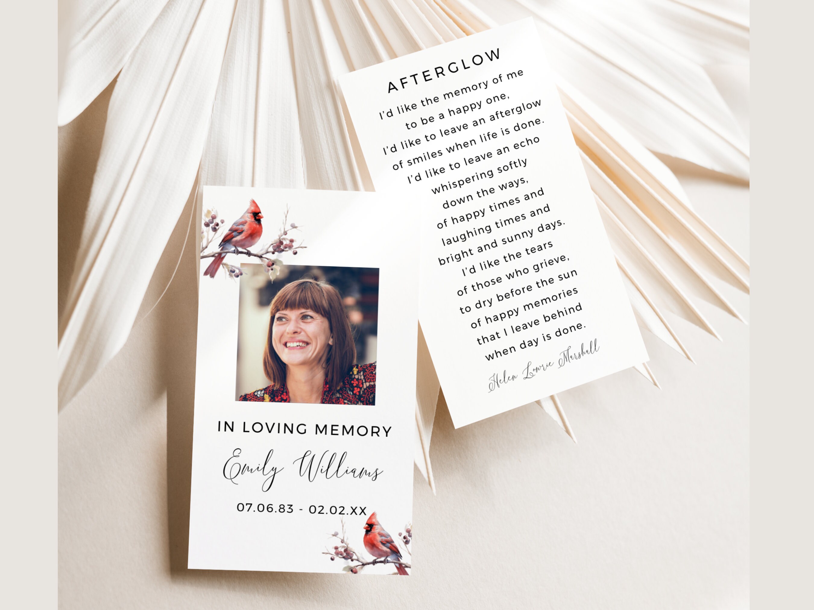 Printable Funeral Prayer Cards Cardinal Bird INSTANT DOWNLOAD