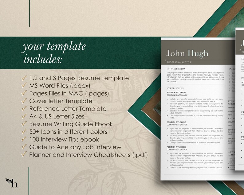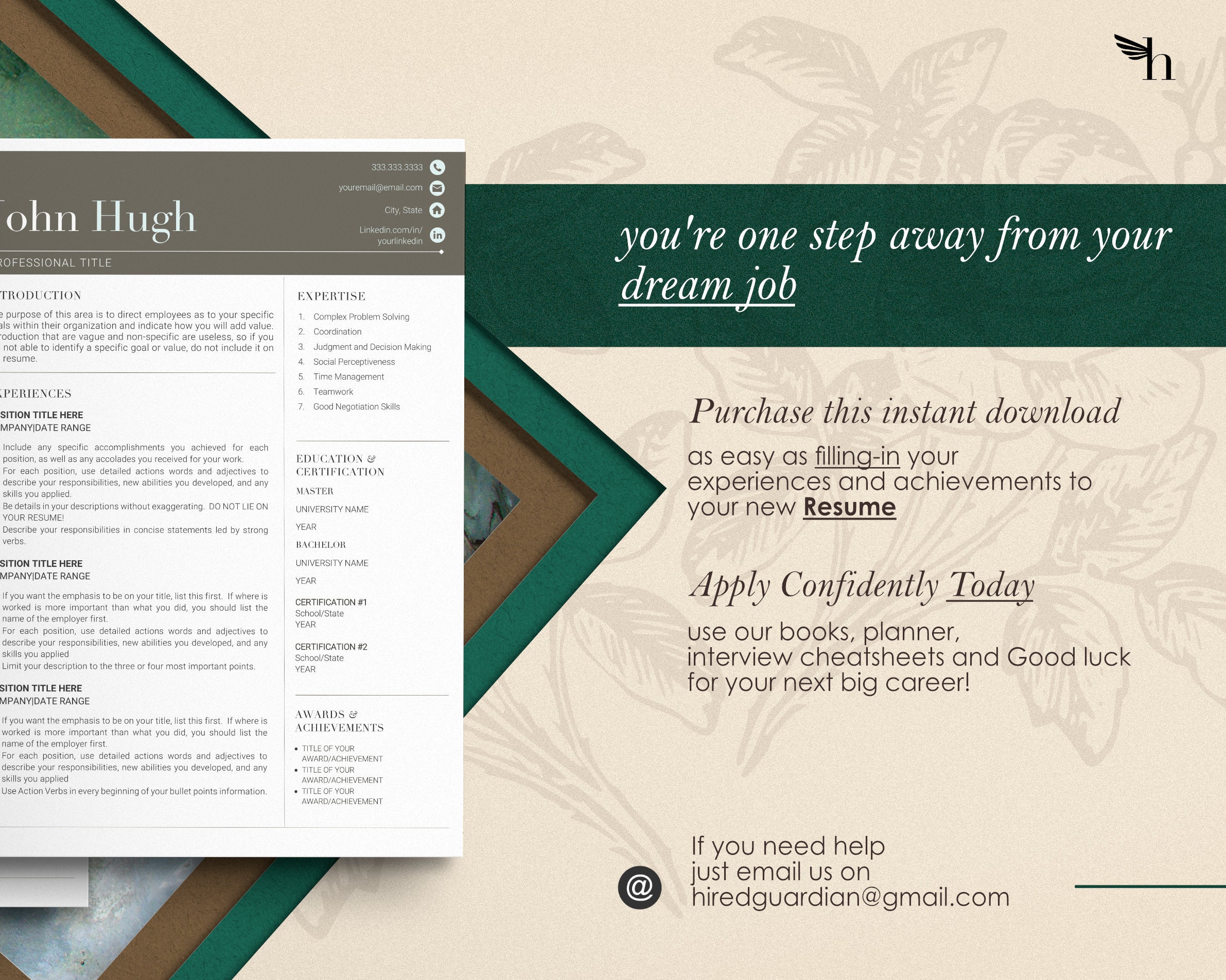 Simple Resume Template and Cover Letter Template Modern CV Etsy Canada