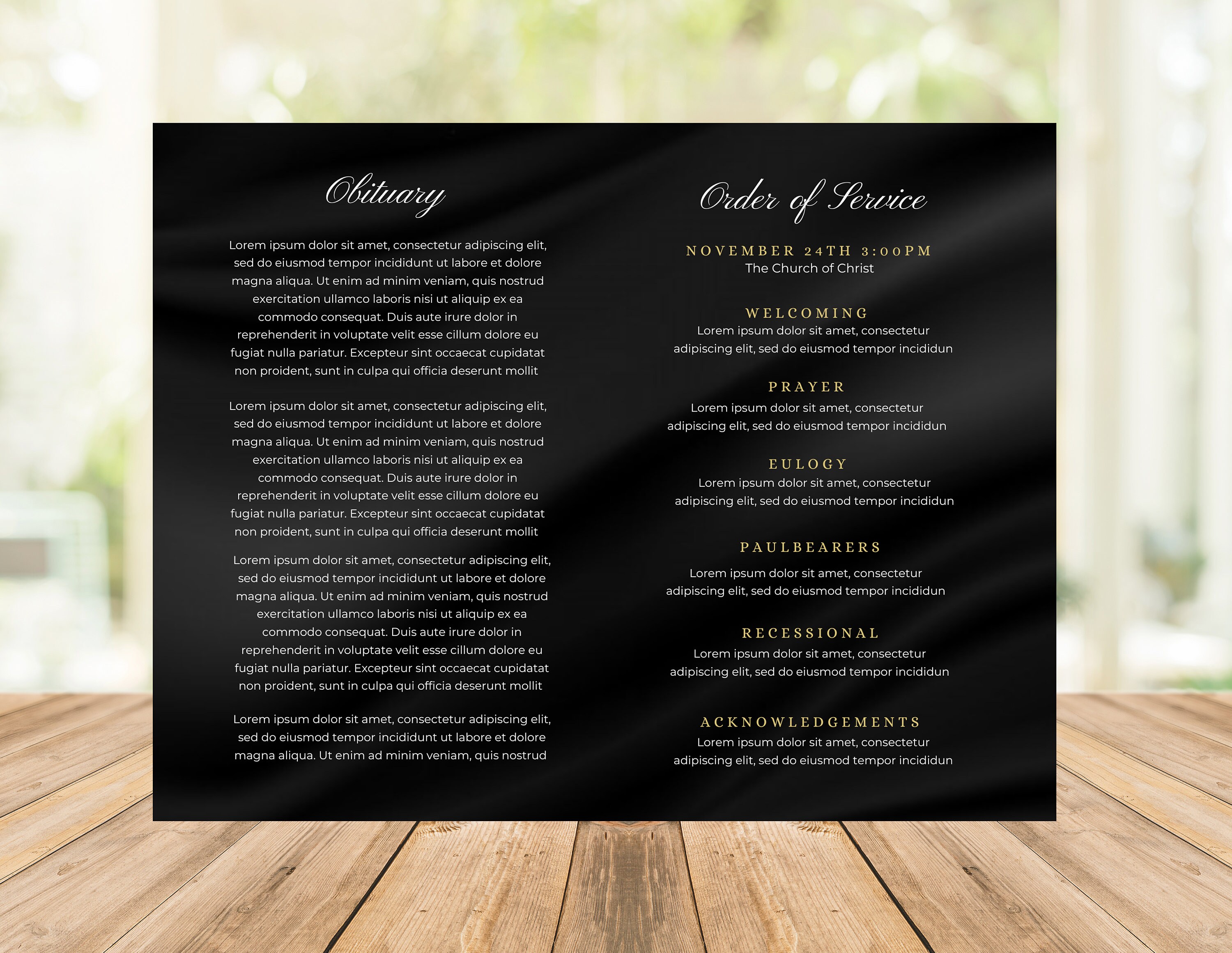 Gold Rock Tabloid Funeral Program Template for Canva Celebration of