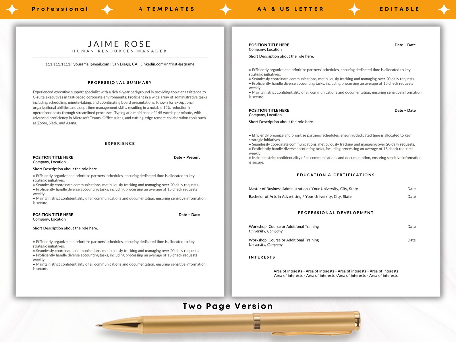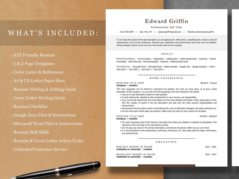 ATS Resume Template Word Minimalist CV Professional CV Template Clean