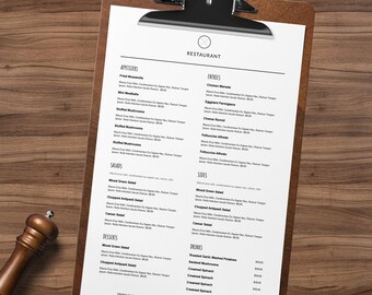 Large Menu Template Restaurant Menu Printable Menu Editable Menu