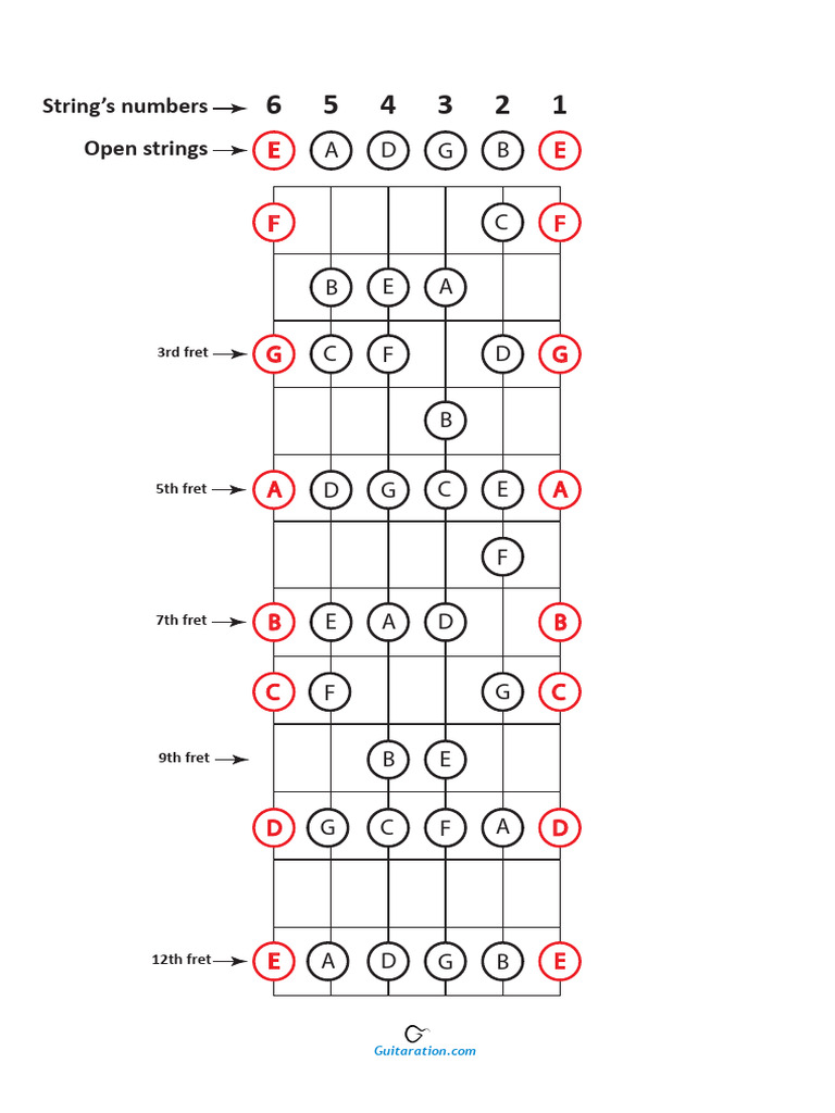 Printable Guitar Fretboard Notes Chart ( pdf) Guvna Guitars