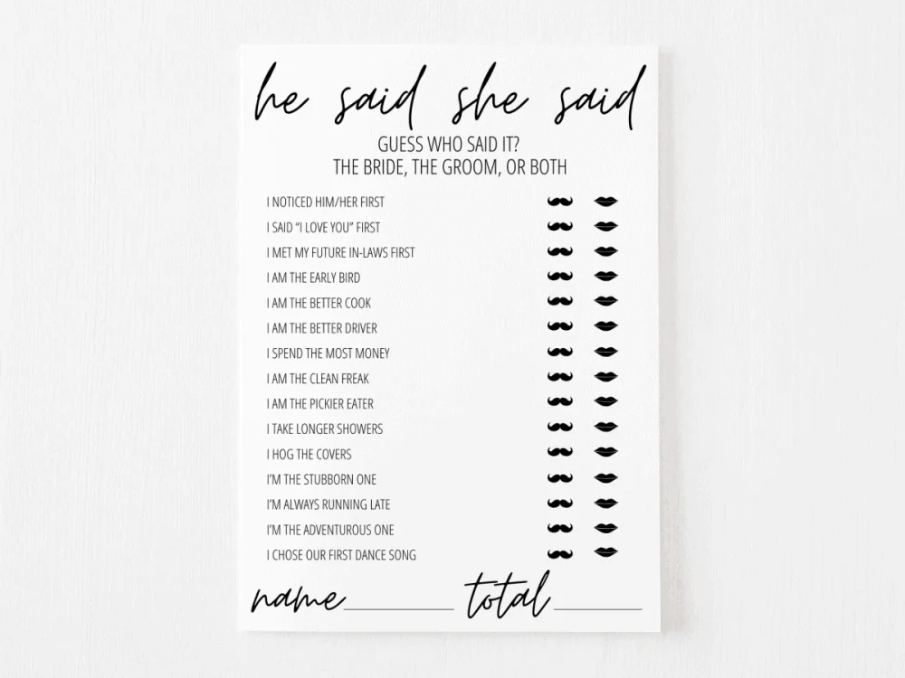 He Said She Said Game Printable Bridal Shower Game Guess Who Said