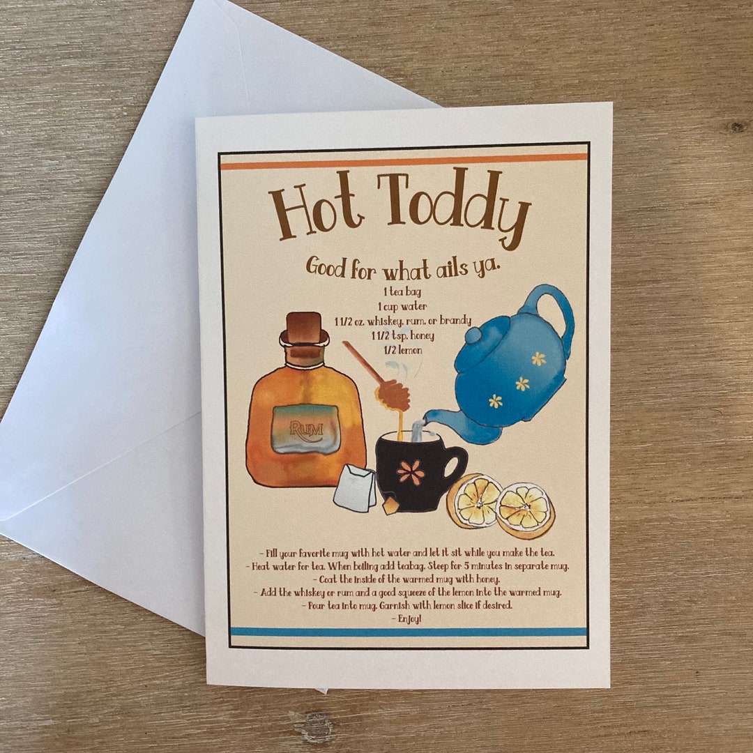 Printable Cocktail Recipe Card Get Well Card Hot Toddy Greeting Card