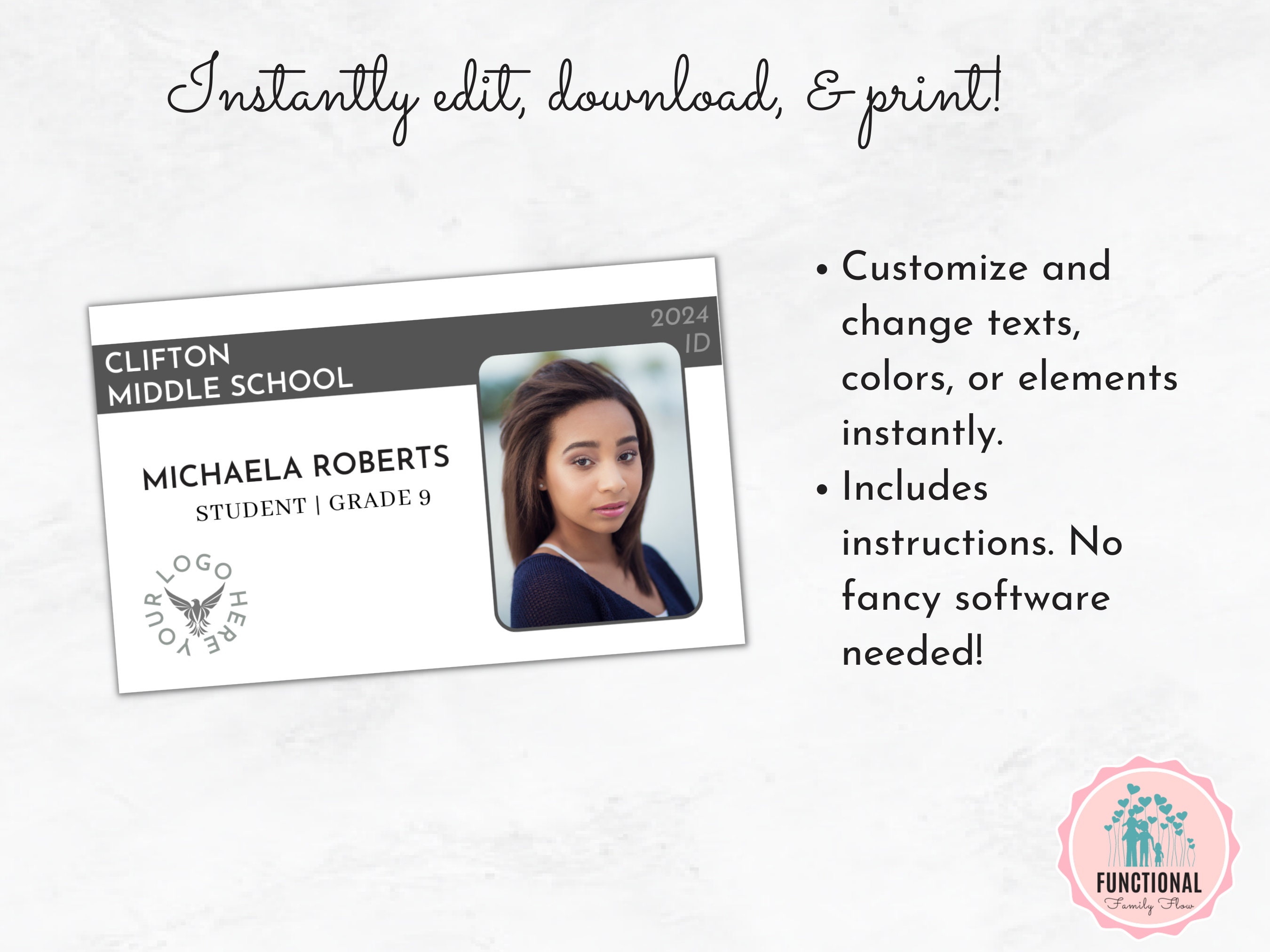 ID Card Template Horizontal Custom ID Badge Printable Etsy