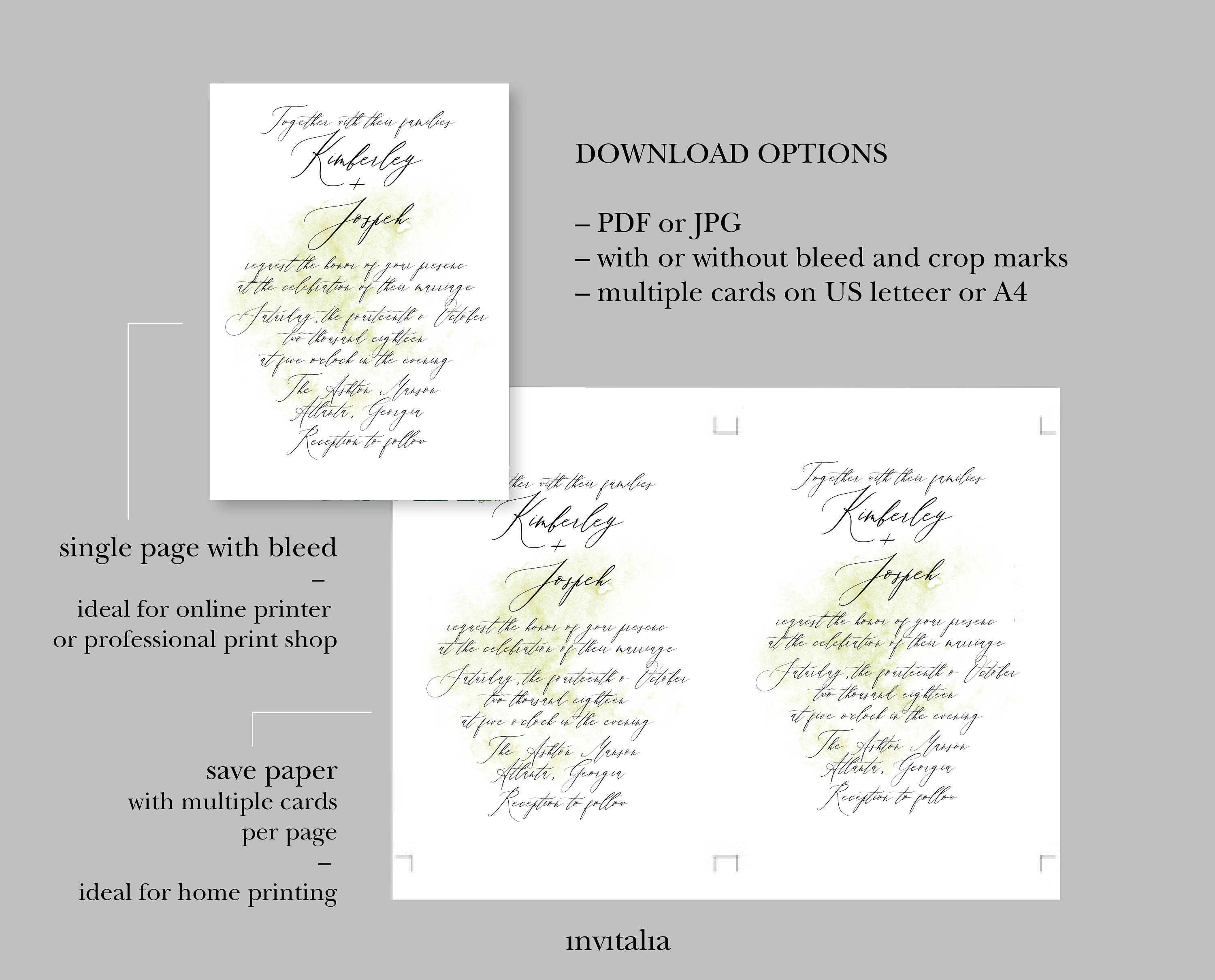 Wedding Invitation Template Printable Wedding Invite Instant Download