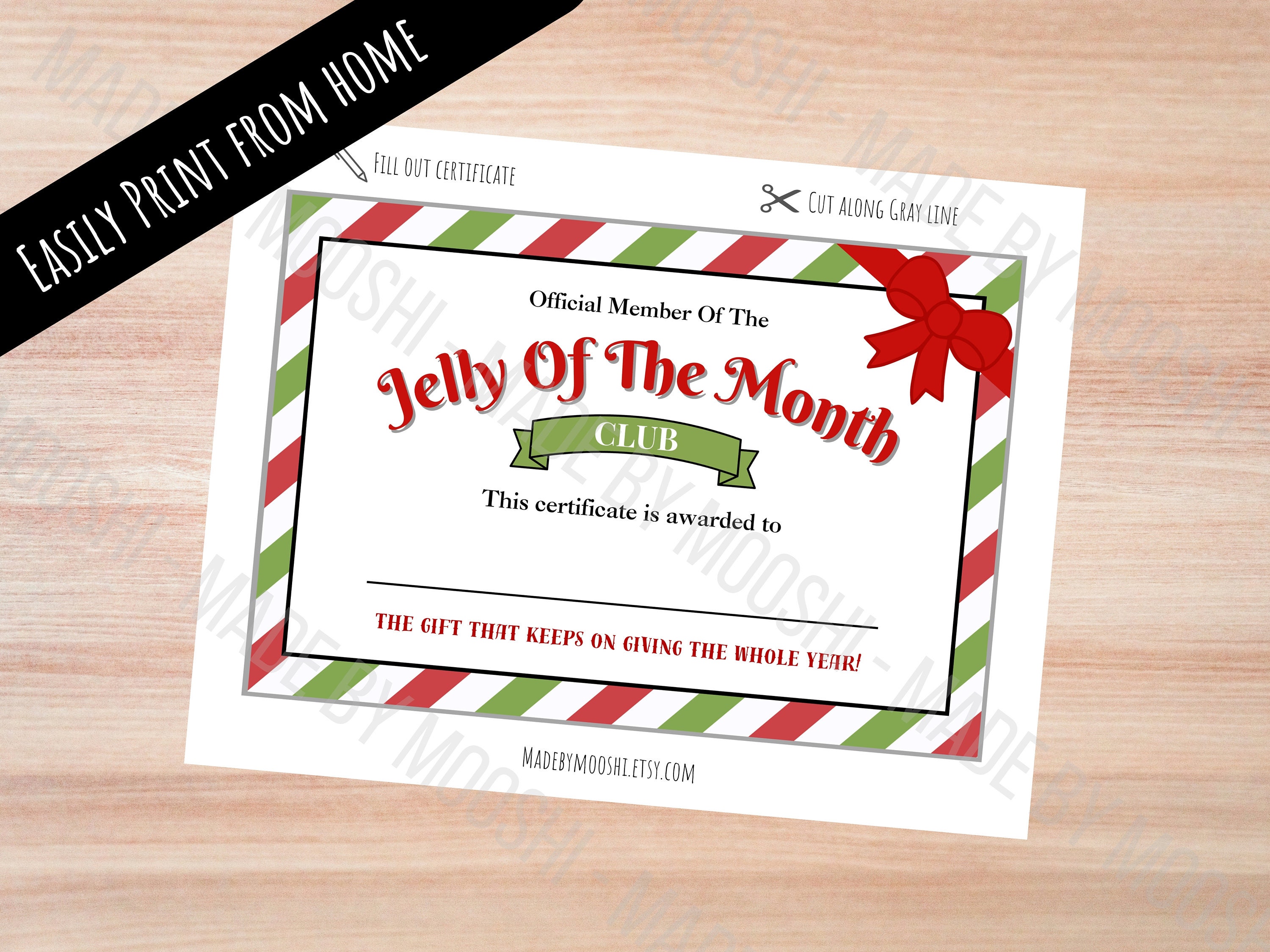 Non Printable Jelly of the Month Club Certificate Etsy Australia