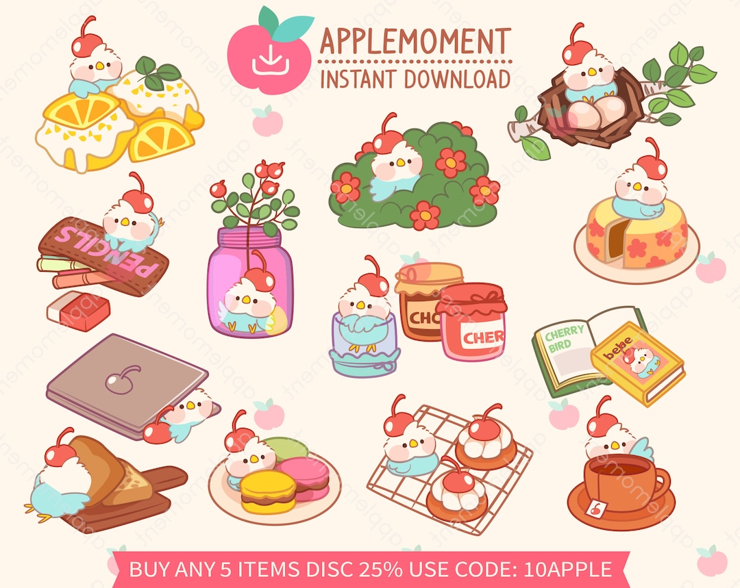 Cute Kawaii Printable Digital Stickers Clipart Illustration Cherry Baby