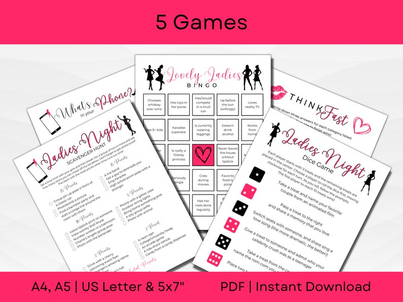 Printable Ladies Night Games Bundle BINGO Think Fast Scavenger Hunt