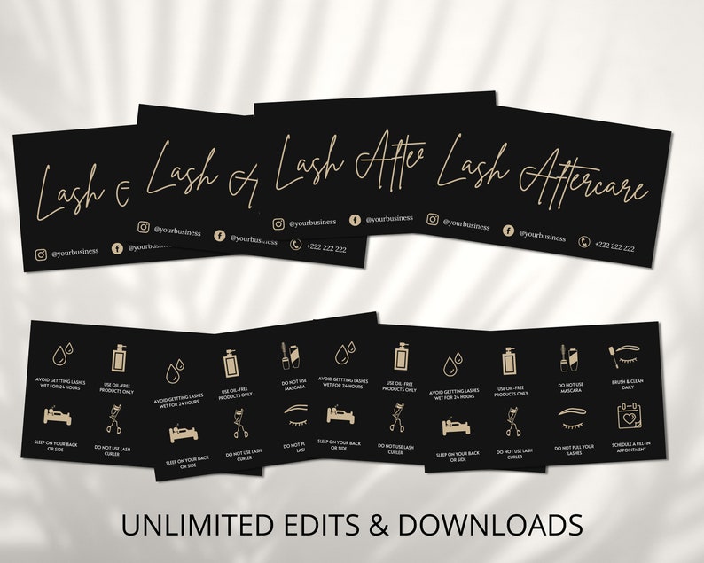 Lash Aftercare Card Template Printable Eyelash Care Cards Editable