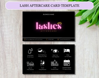 Lash aftercare card template editable lash business card etsy Artofit