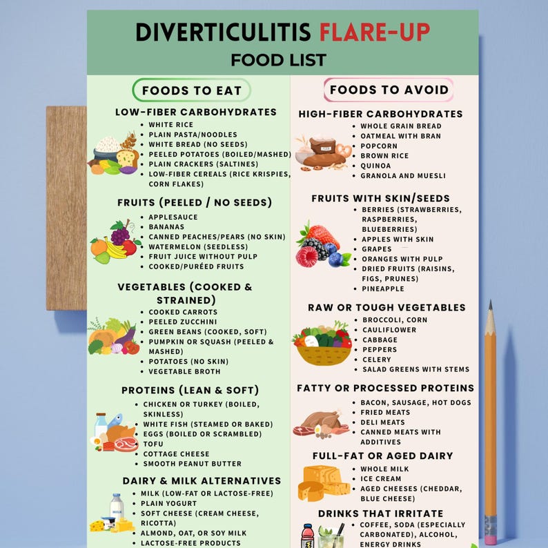 Diverticulitis Food List Printable • Foods to Eat Avoid • Gut Health