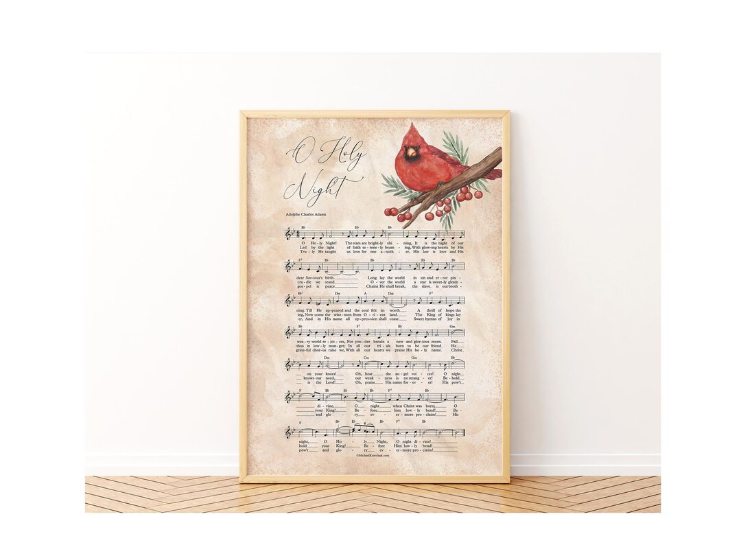O Holy Night Printable Christmas Lyrics Print Cardinal Wall Art Aged