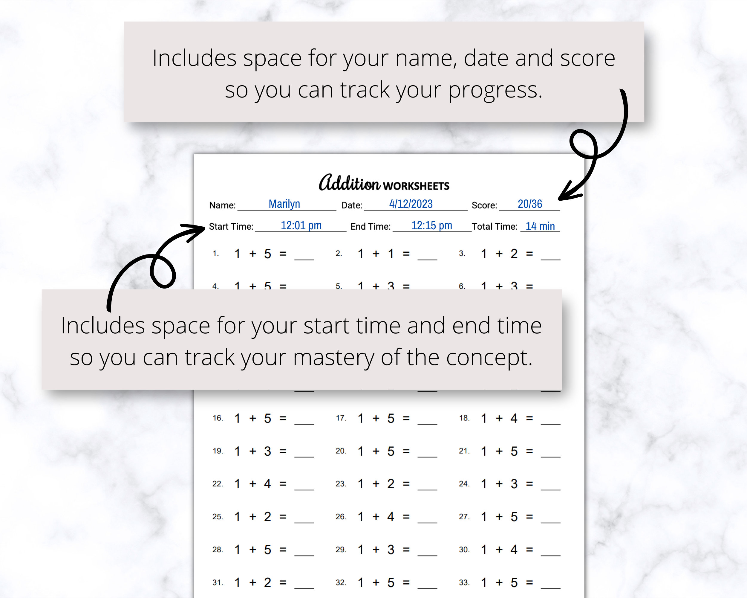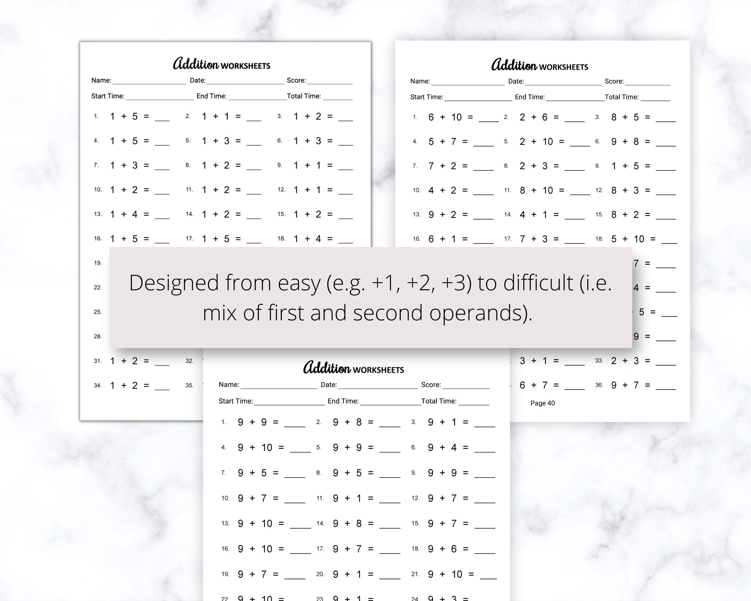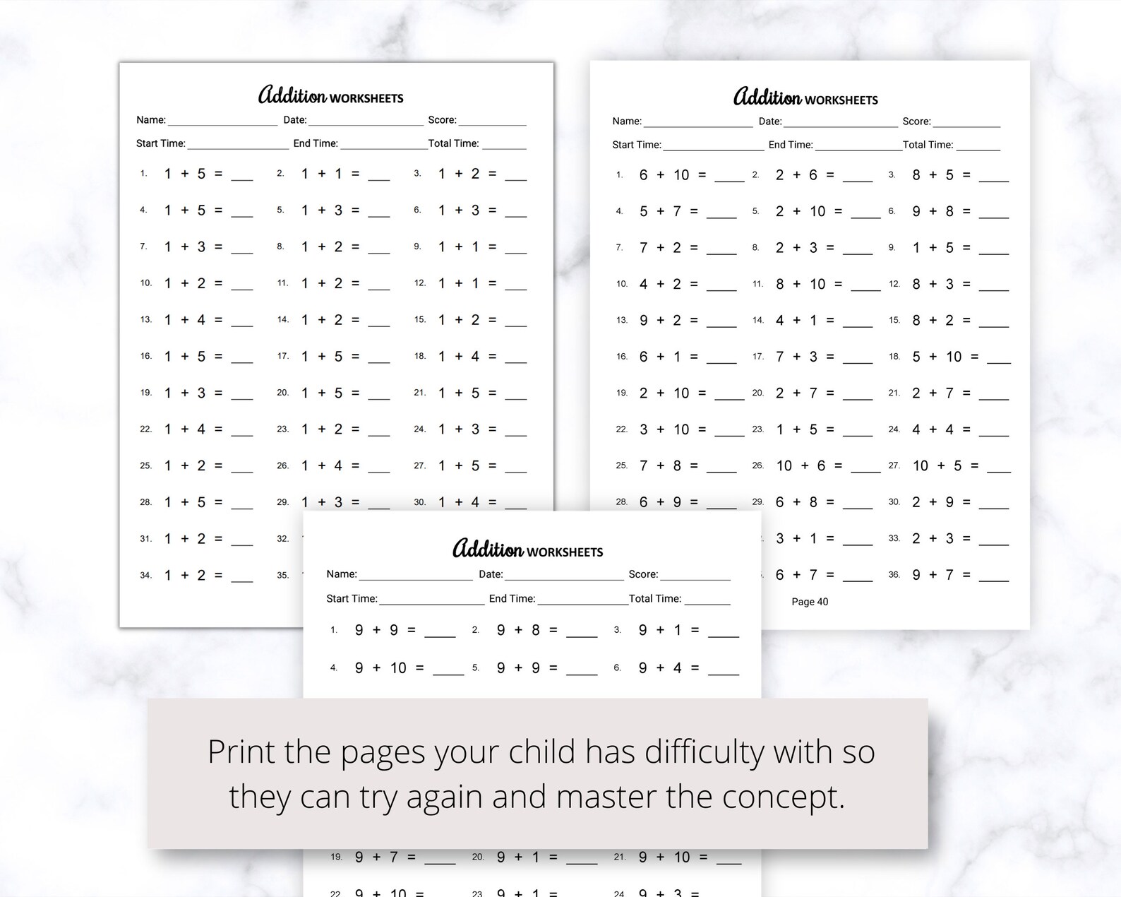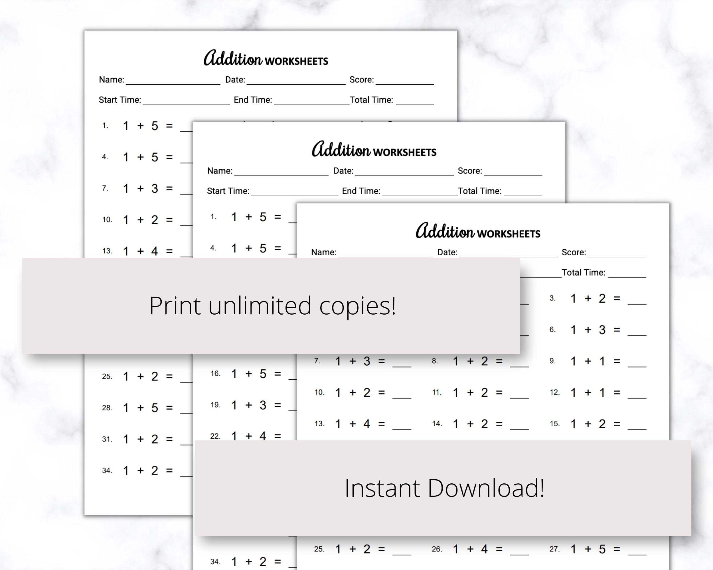Printable Addition Worksheets PDF Free Download