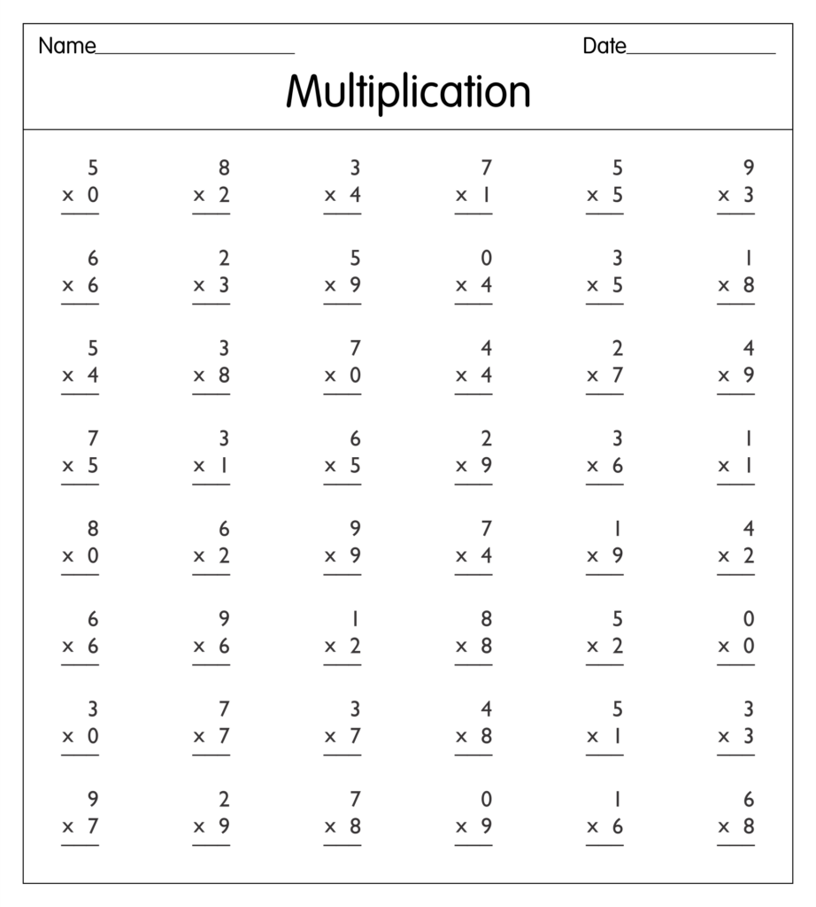 Free Printable Multiplication Worksheets
