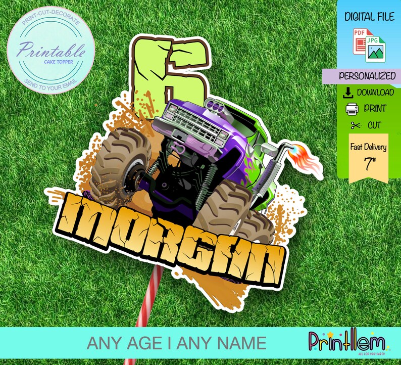 EDITABLE Printable Monster Truck Cake Topper Monster Truck Etsy