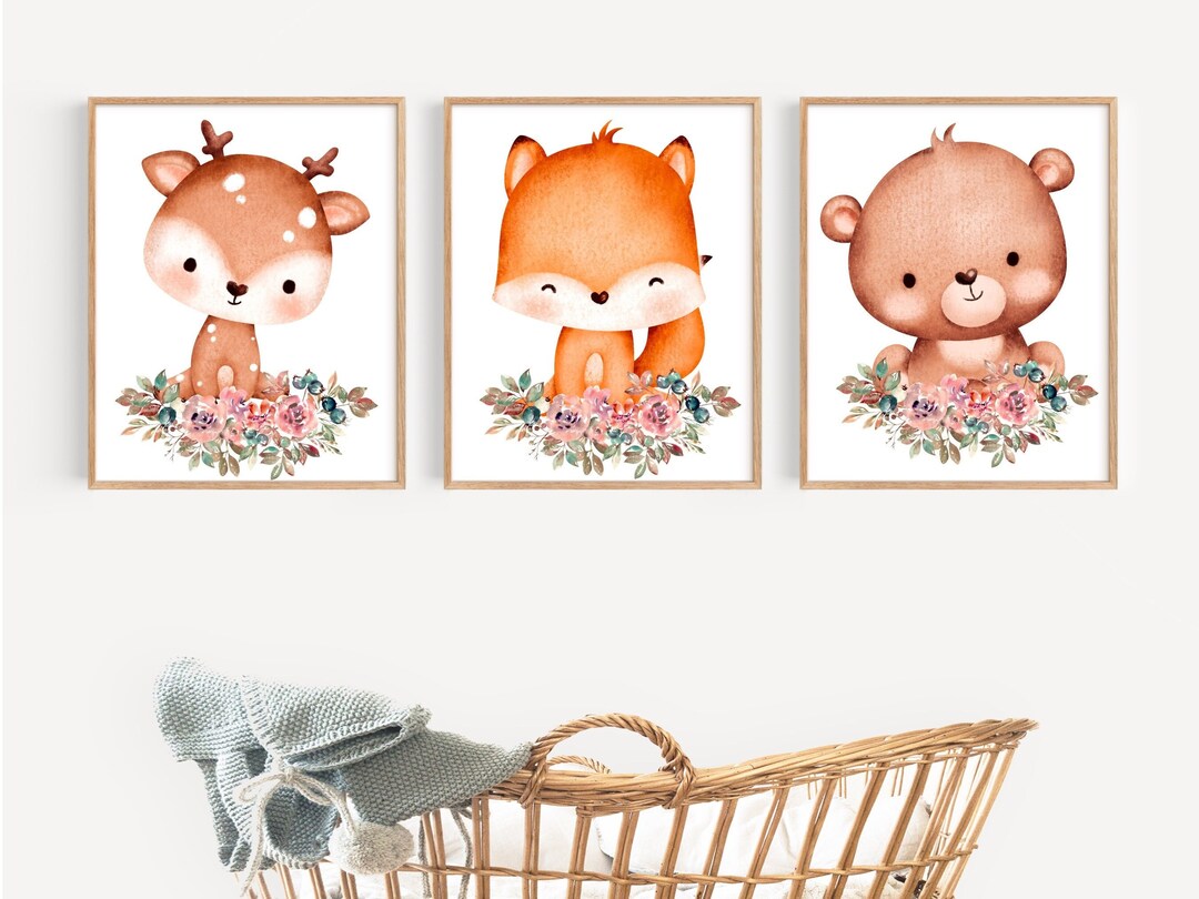 Printable Woodland Nursery Wall Art Prints Digital Nursery Art Animal