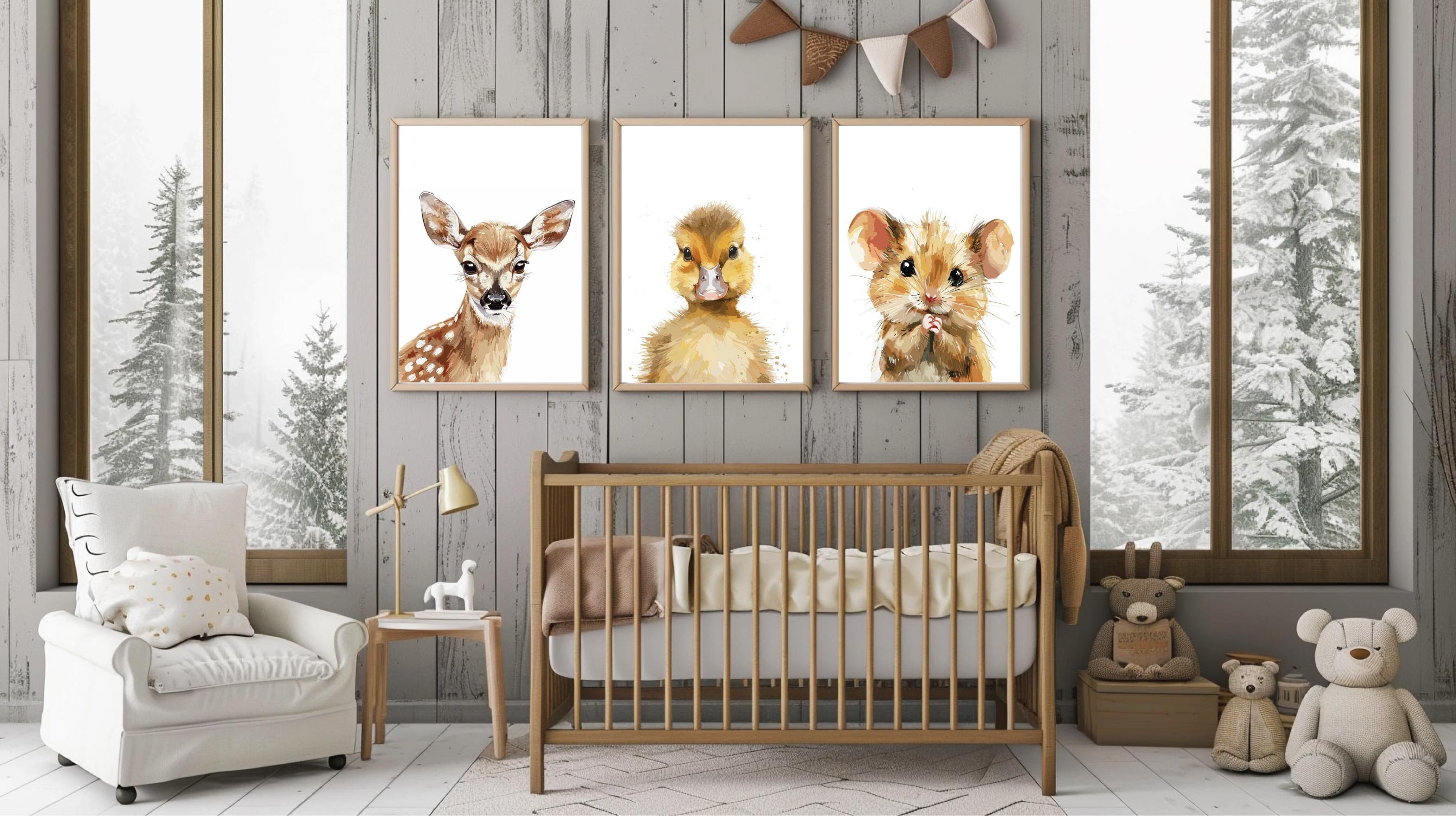 Printable Forest Nursery Wall Art Set of 3 Custom Woodland Nursery