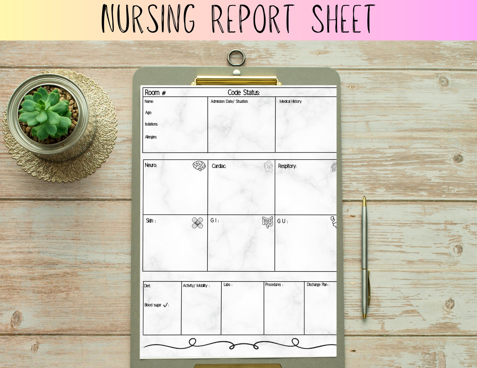 Nurse Report Sheet Nursing Shift SBAR Hand off Report Printable