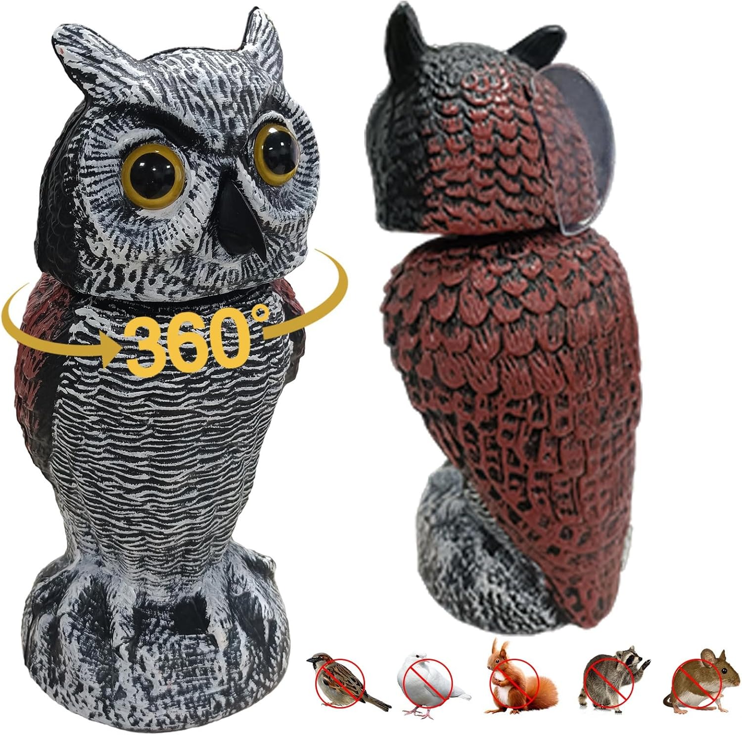 Amazon com : Hedoc 2 Pack Fake Owl Decoys to Scare Birds Away Rotating