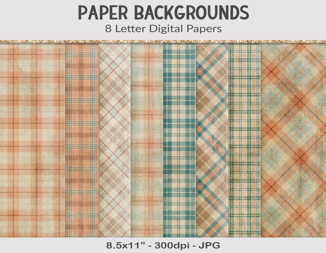 Junk Journal Pages Plaid Vintage Texture 8 5x11 Digital Papers