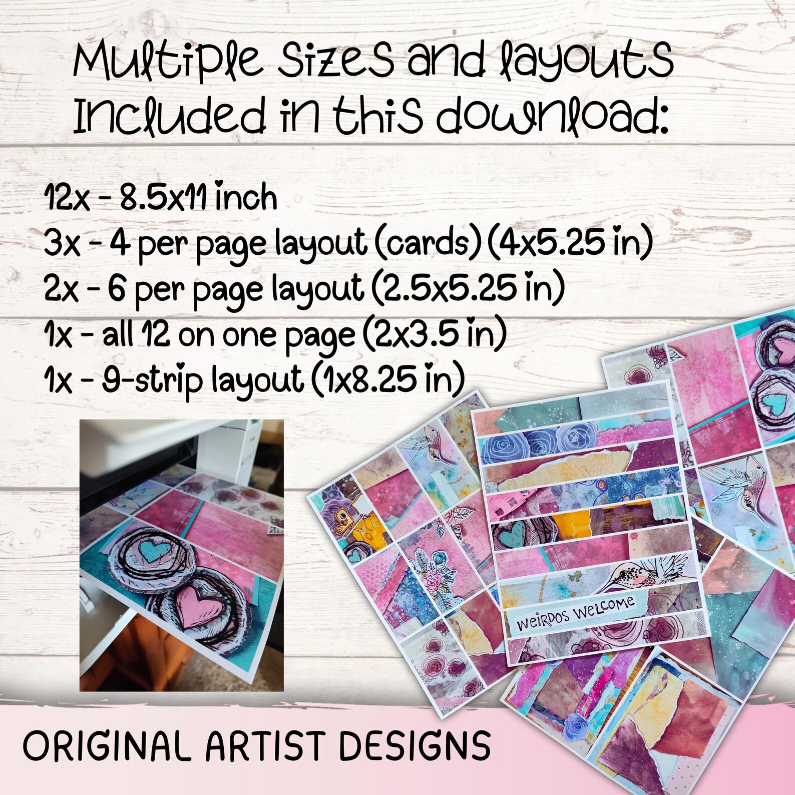 Torn Paper Mixed Media Collage PRINTABLE Colorful Painted Paper