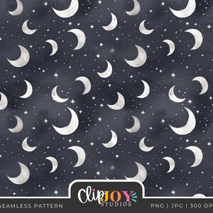 Watercolor Moons Night Sky Seamless Pattern Halloween Printable Paper