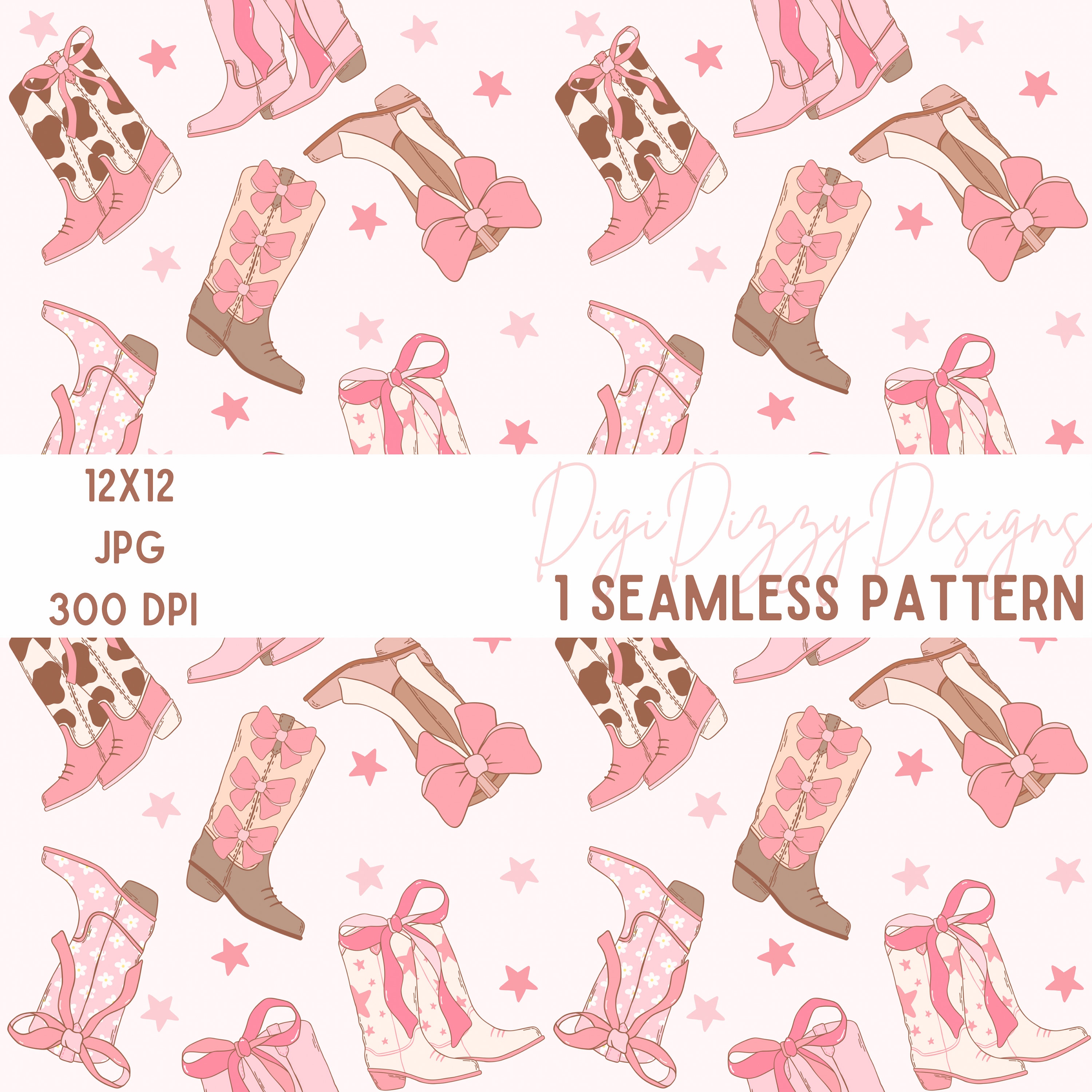 Cowgirl Boots Seamless Digital Paper Western Pink Girly Repeating