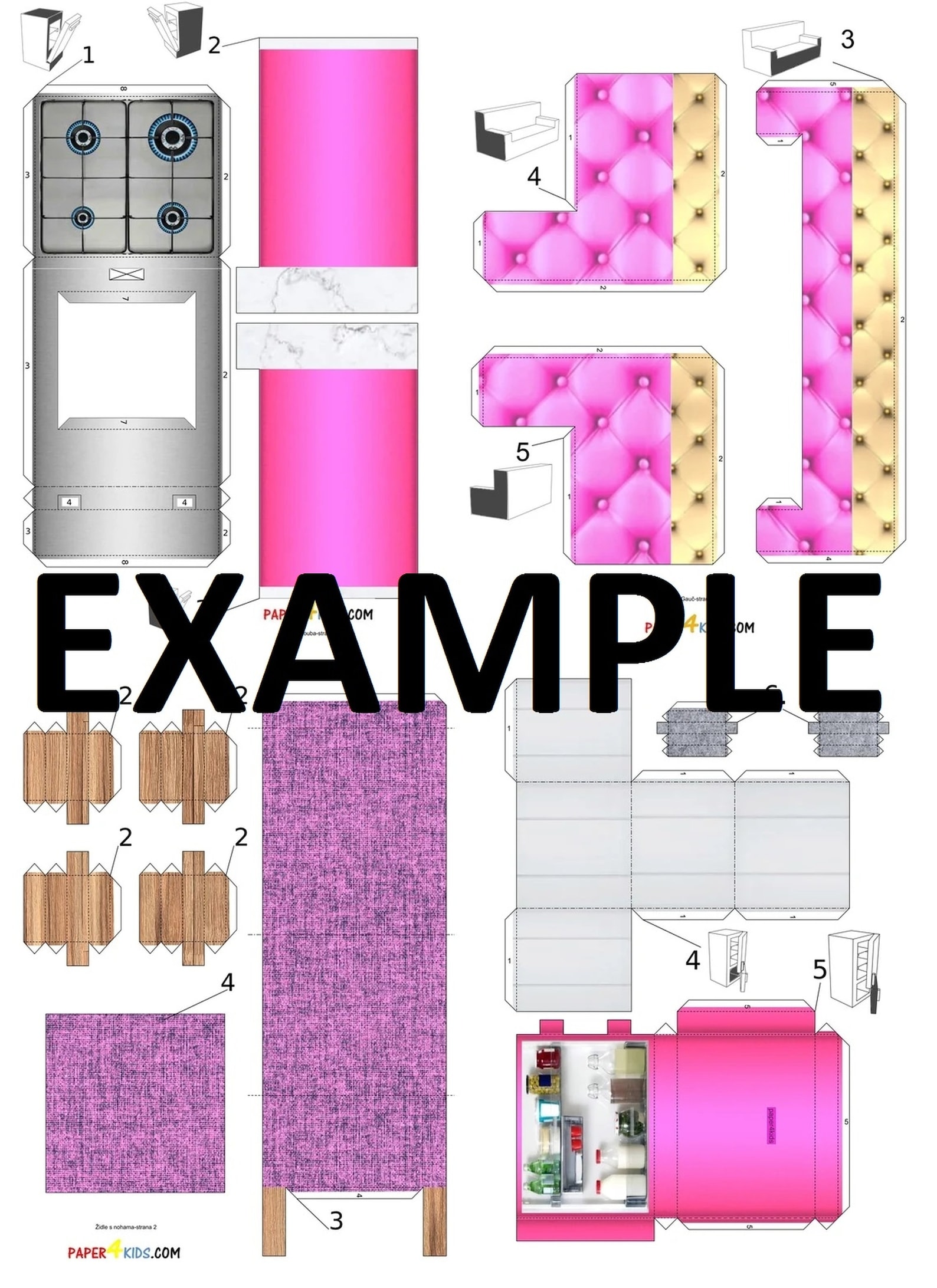 Printable Fridge Furniture Paper cut Digital PDF Download for Dolls 1/