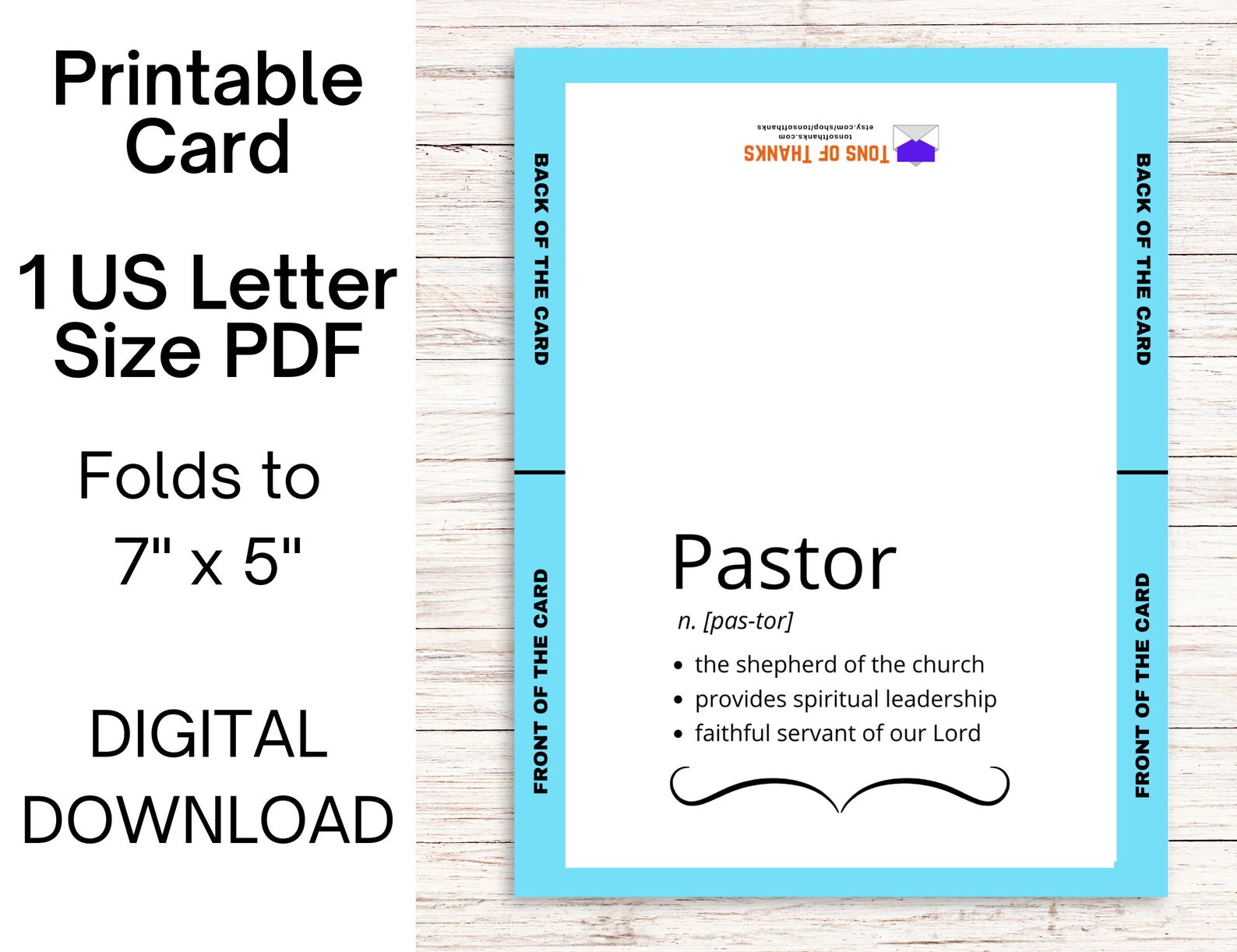 Pastor Appreciation Card Printable Instant Download 5x7 Inch Etsy