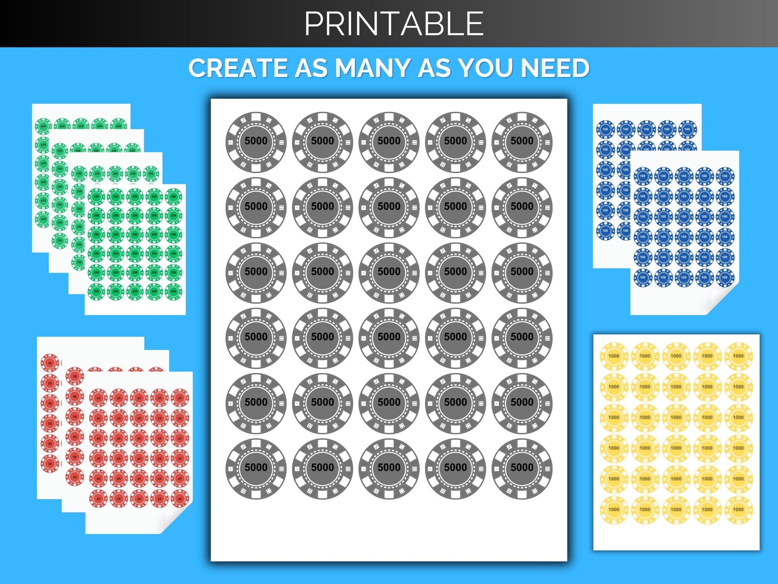 Printable Poker Chips Variety Pack Etsy