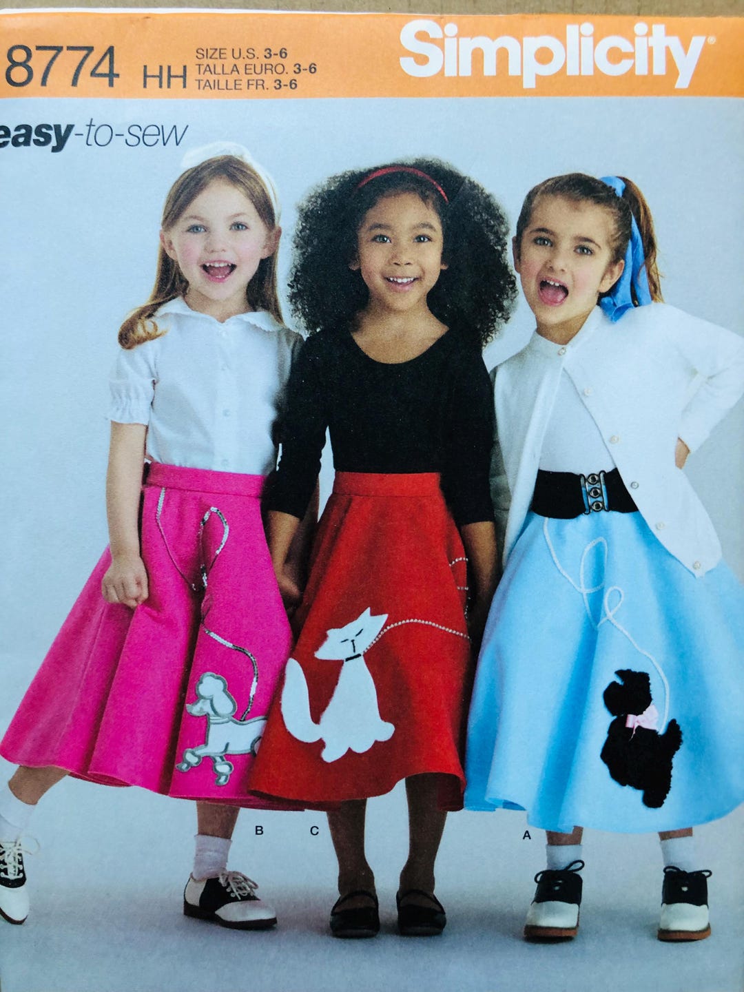 Girls 1950 s Poodle Skirt Pattern Simplicity S8774 Easy to Sew Pattern