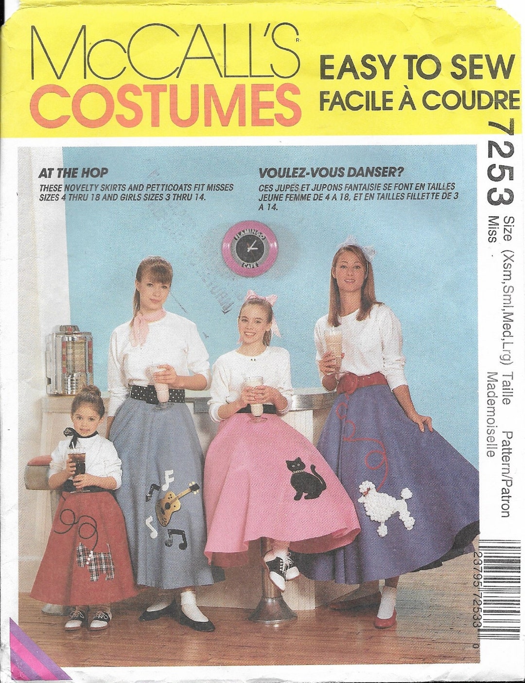 50s Diner Poodle Skirt Costume Sewing Pattern Misses Sizes Etsy