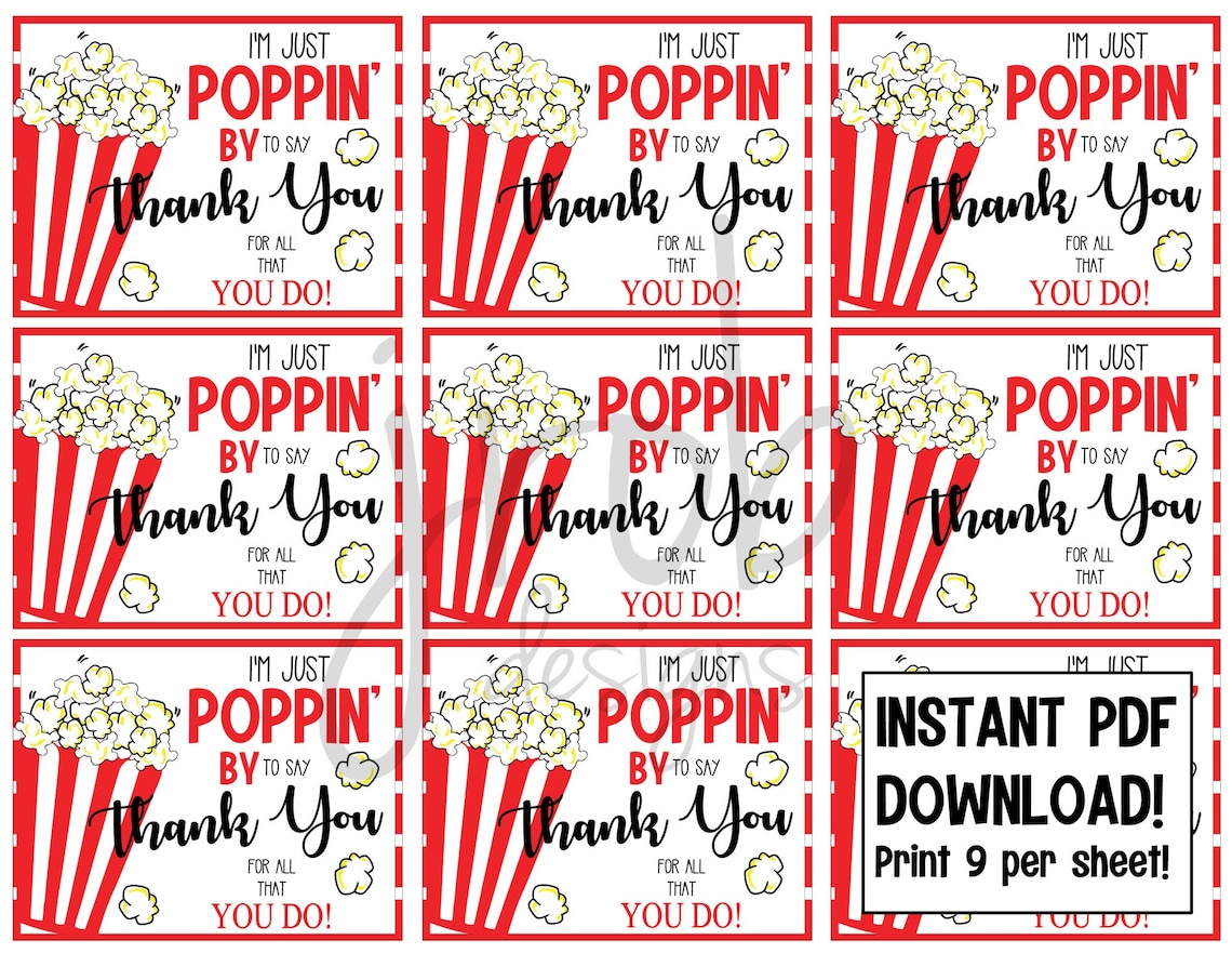 Popcorn Gift Tag Popcorn Appreciation Tag Poppin by to Say Thank You