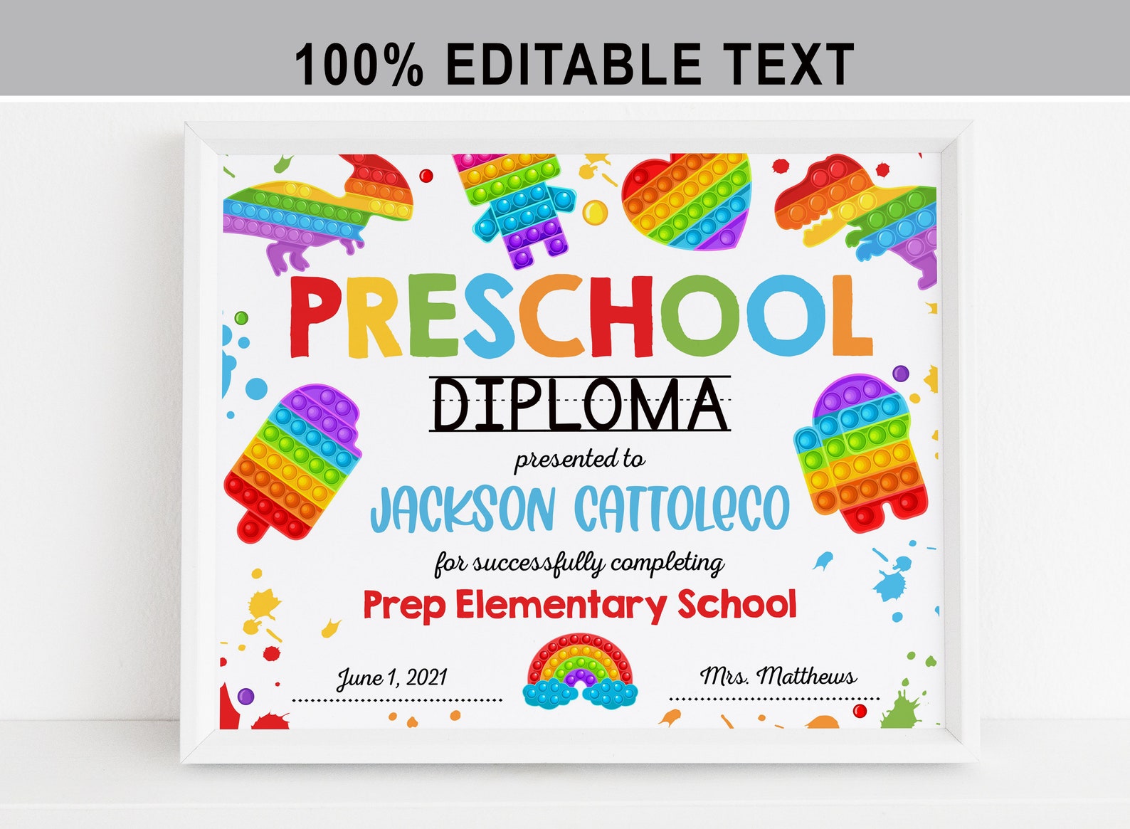 Editable Preschool Diploma Printable Graduation Certificate (digital
