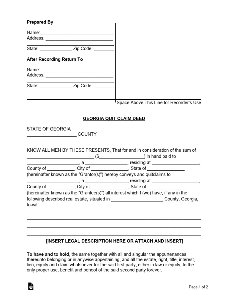 Georgia Quit Claim Deed Form (Free Templates) CocoDoc