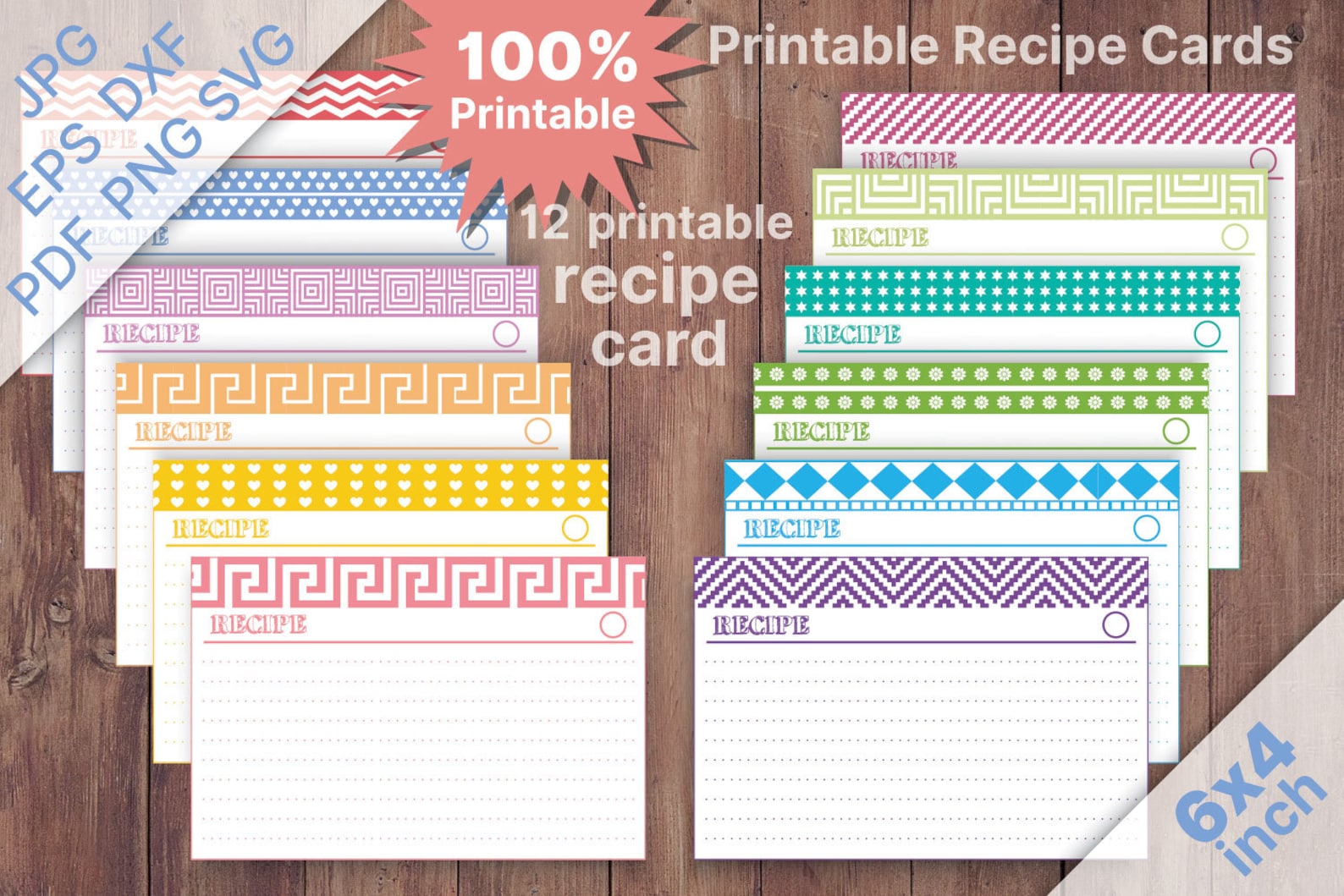 Printable Recipe Cards 4x6 Instant Download Etsy