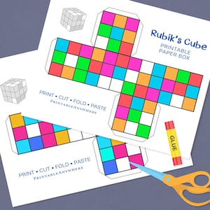 Printable Rubiks Cube Digital Download Paper Gift Box Colorful Kids